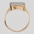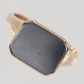 Klackring med onyx, stl 20¼, bredd 3-11mm, repor, 18K Vikt: 6,2 g.
