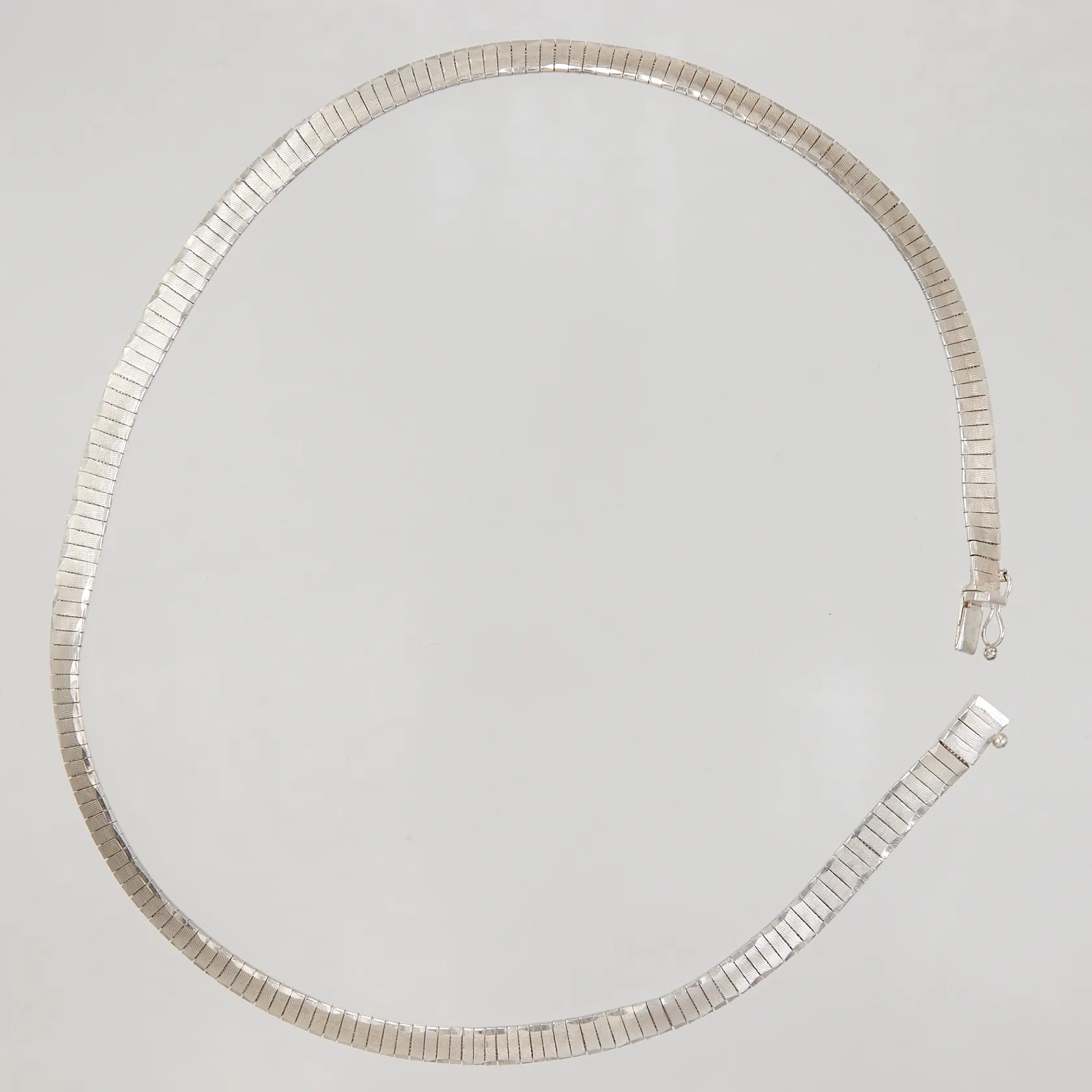 Collier halvstelt, 40cm, bredd 6mm, ojämn länk/bruksslitage, Silver 925/1000 Vikt: 23,6 g.