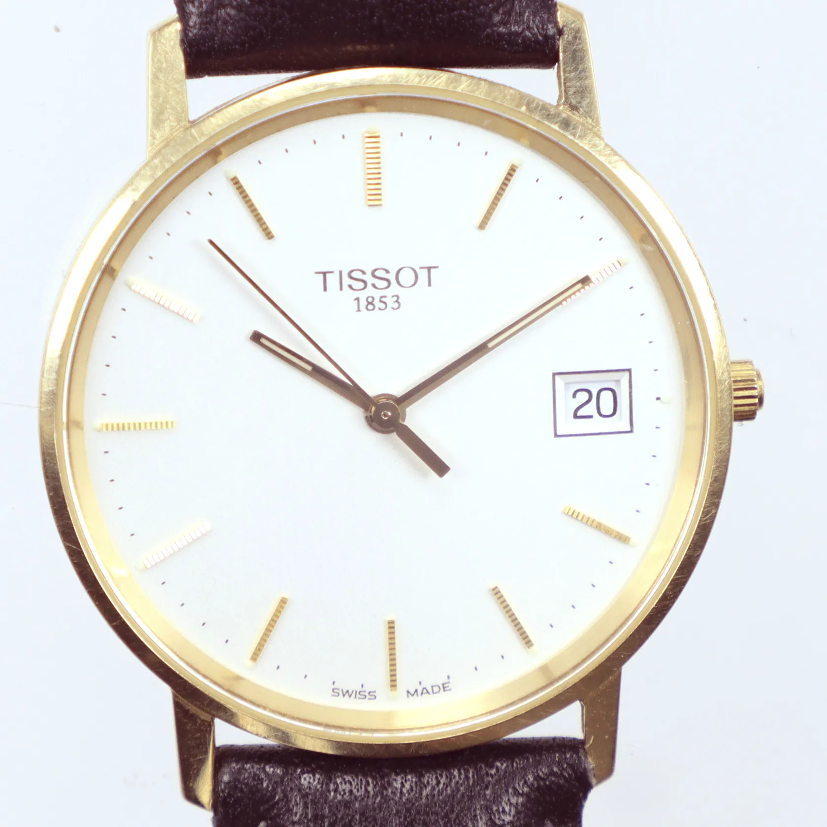 Herrur Tissot Quartz, behov av batteribyte, Ø33mm, skinnband, bruttovikt 26,3gr, 14k