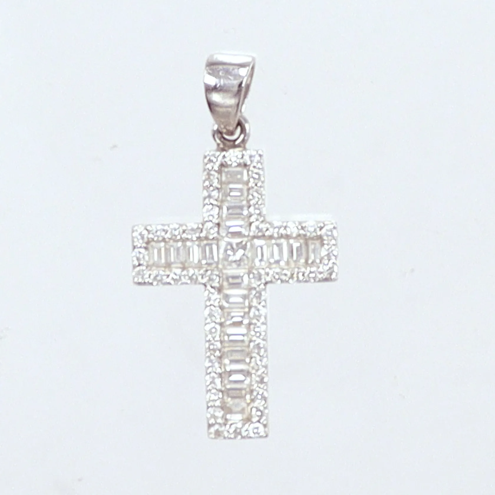 Hänge kors vitguld, diamanter 71st totalt ca. 2,3ct varav 20st med baguettslipning, längd 3,2cm, bredd 16,6mm, djup 2,9mm,18K Vikt: 3,8 g.