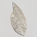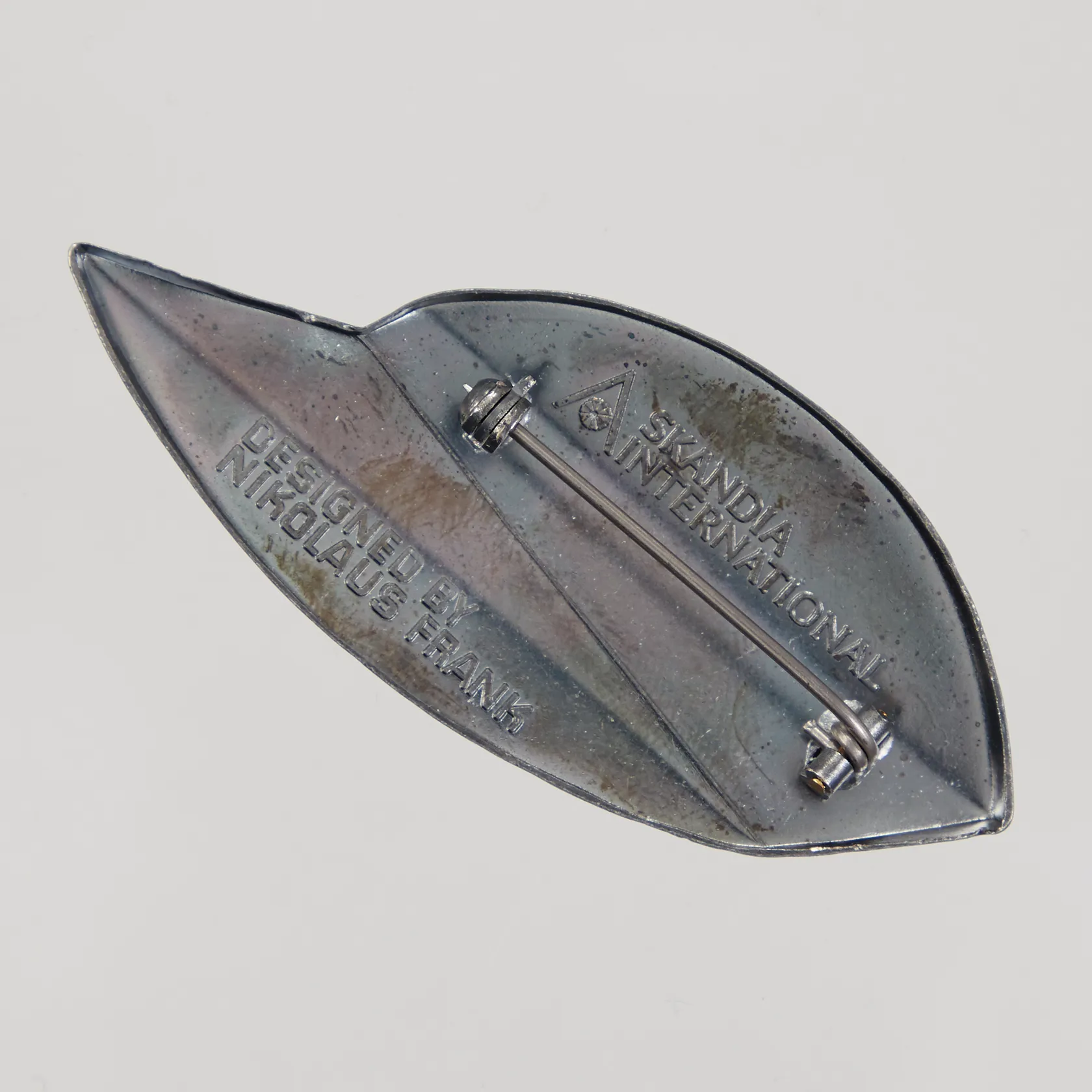 Brosch, 66mm, bredd ca 5,5 - 28,4mm, Skandia International designed by Nikolaus Frank, vitmetall
