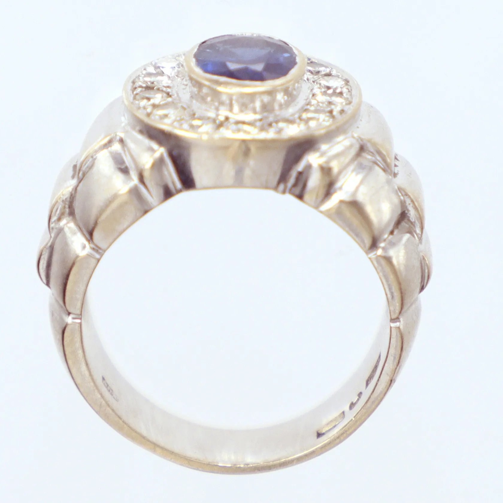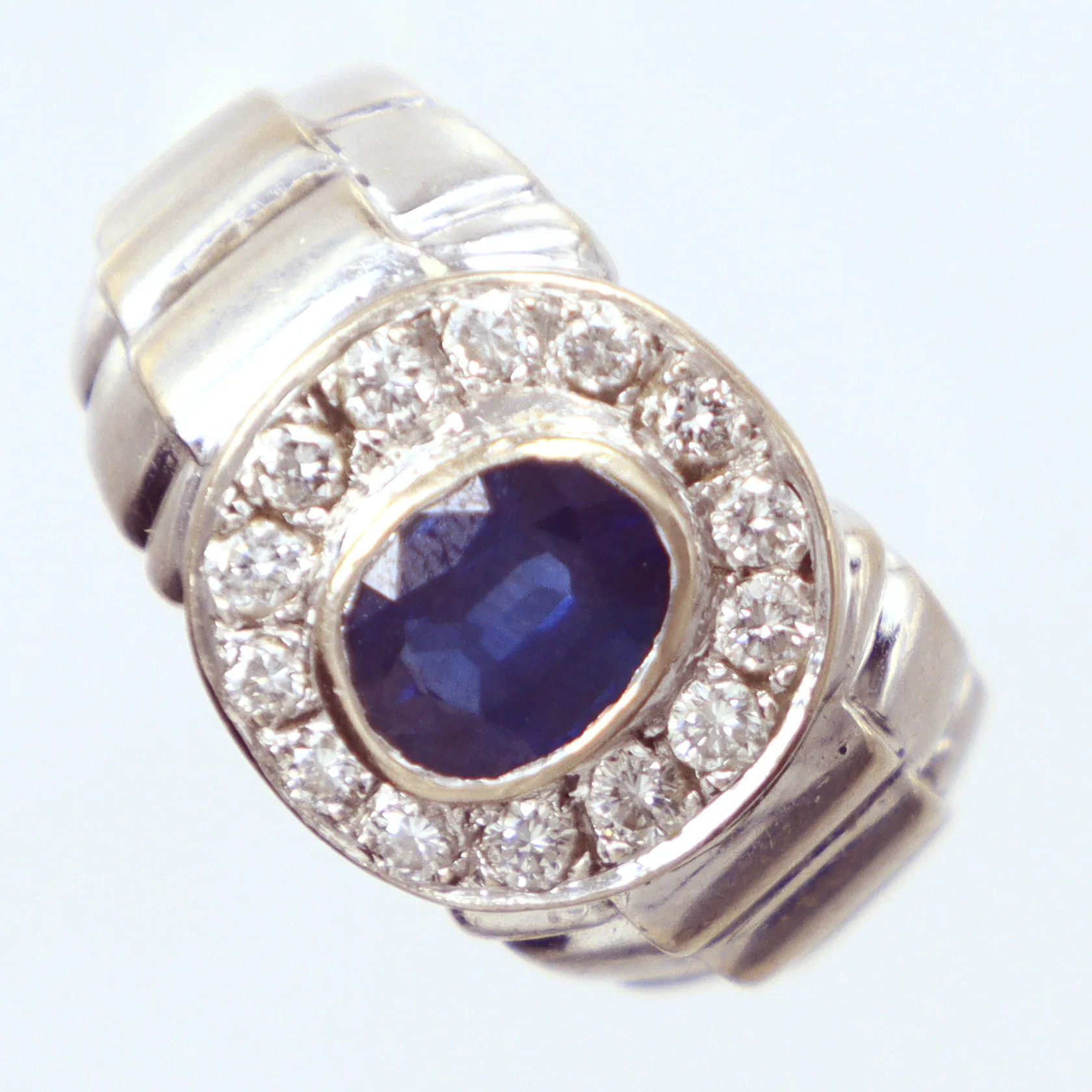 Diamantring vitguld med diamanter 14x0,05ct och safir, Ø19¼,18k, år 1998 Vikt: 19,3 g.