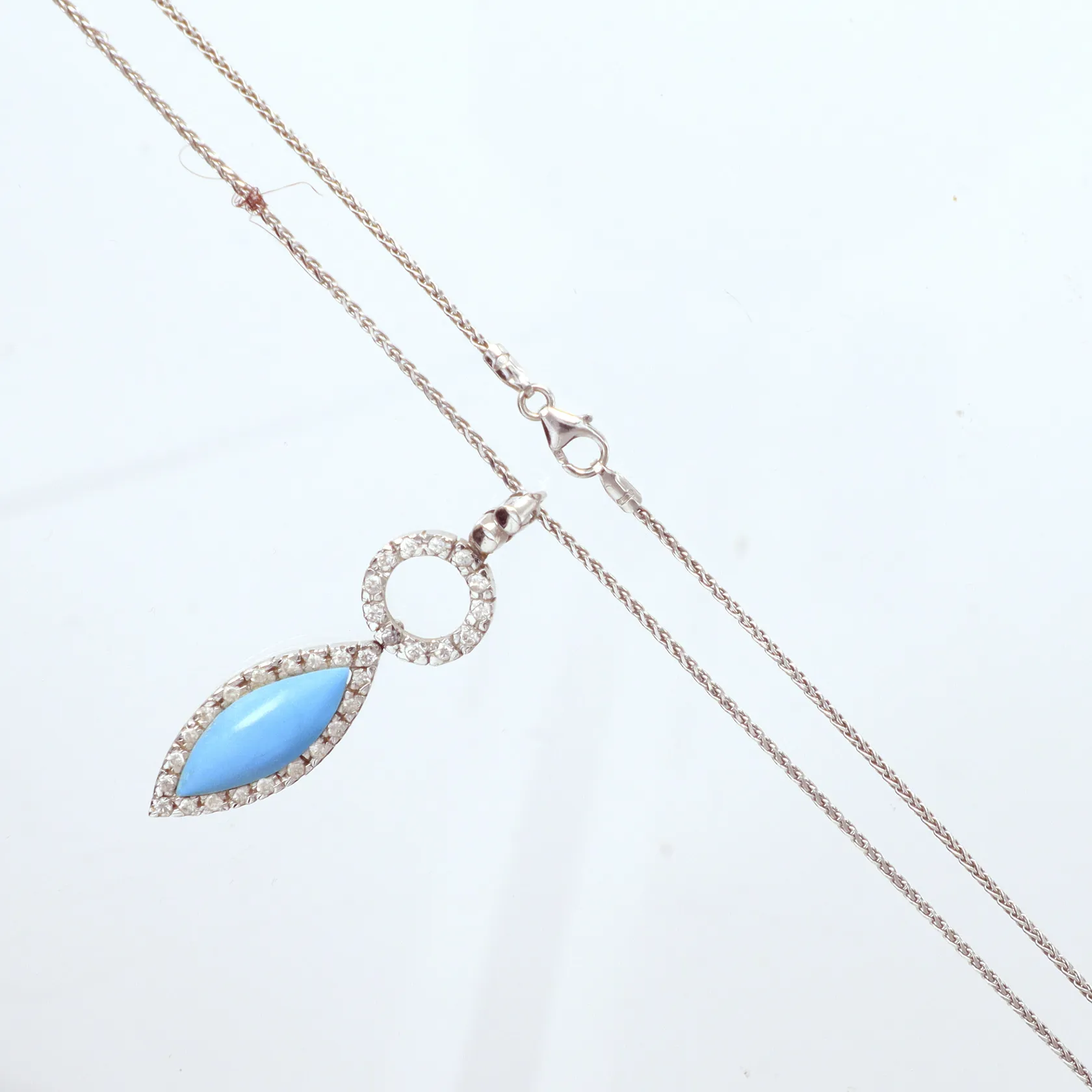 Kedja vitguld med hänge, turkos, längd 43,5cm, 18k Vikt: 9,5 g.