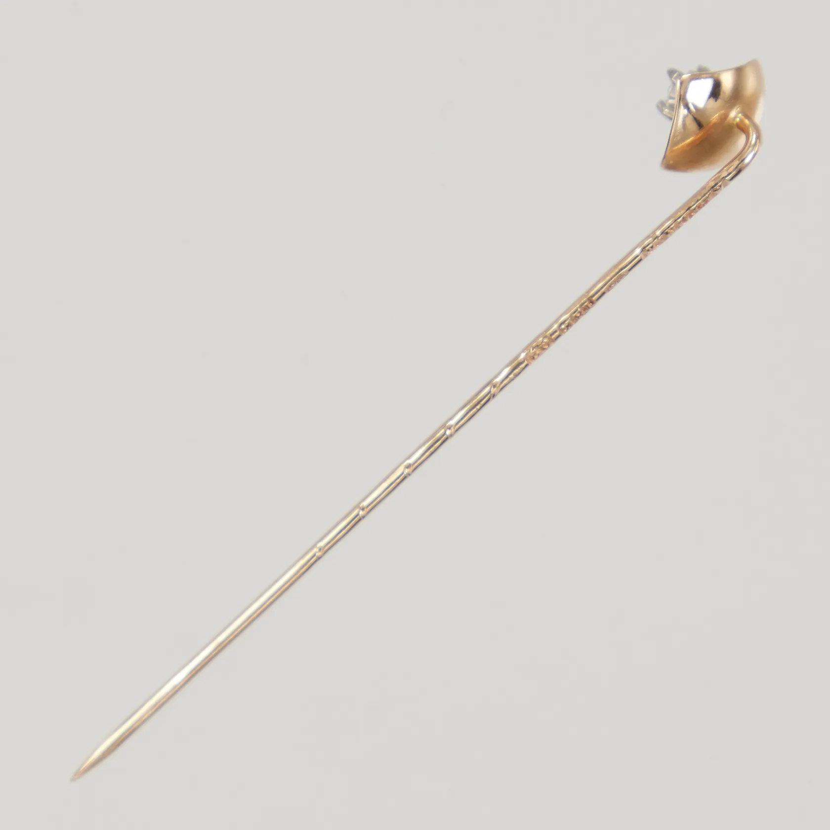 Nål med vit sten, längd ca 52mm, Alton 18K Vikt: 0,8 g.