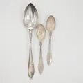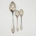 Tre skedar, olika längd, gravyr/slitage, Silver Vikt: 68,7 g.
