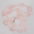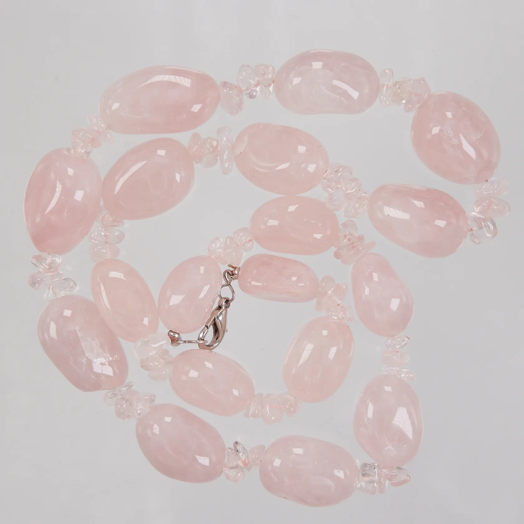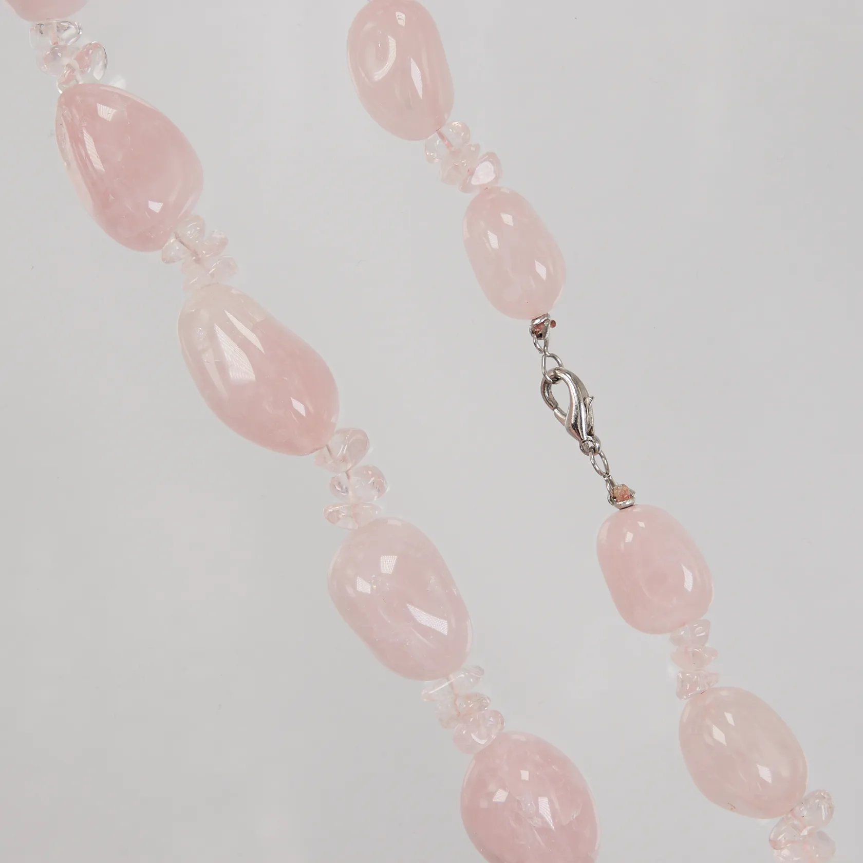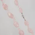 Rosenkvarts collier, ca 62,5cm, bredd ca 8,3 - 16mm, vitmetall lås