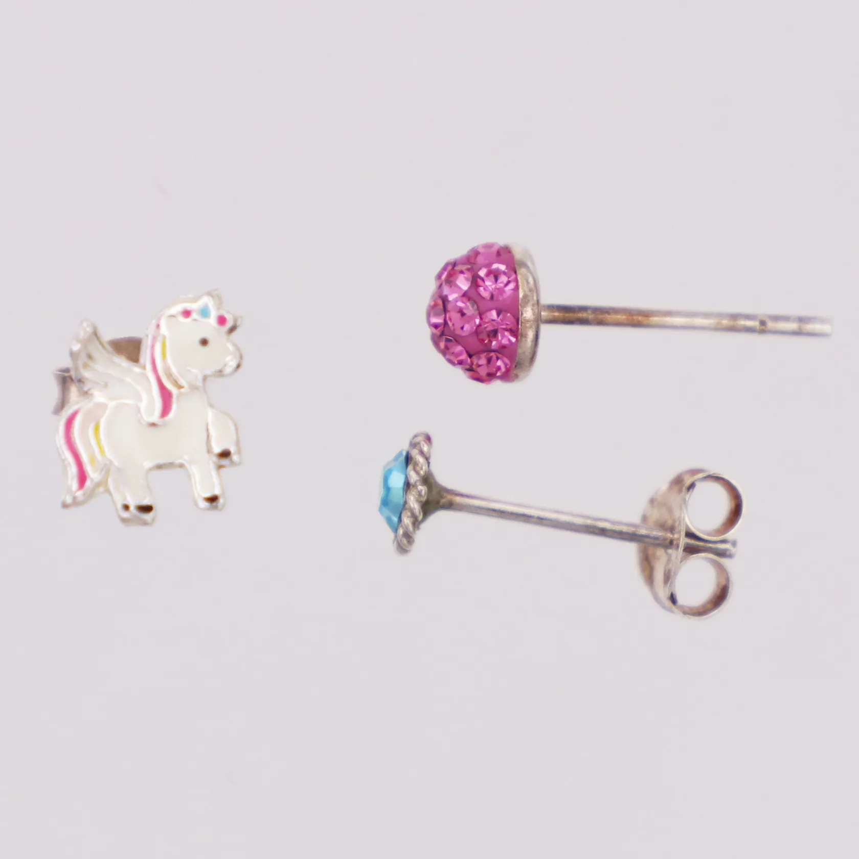 3 Örhängen, udda, stenar, emalj, en stopp saknas, 925/1000 silver Vikt: 0,7 g.