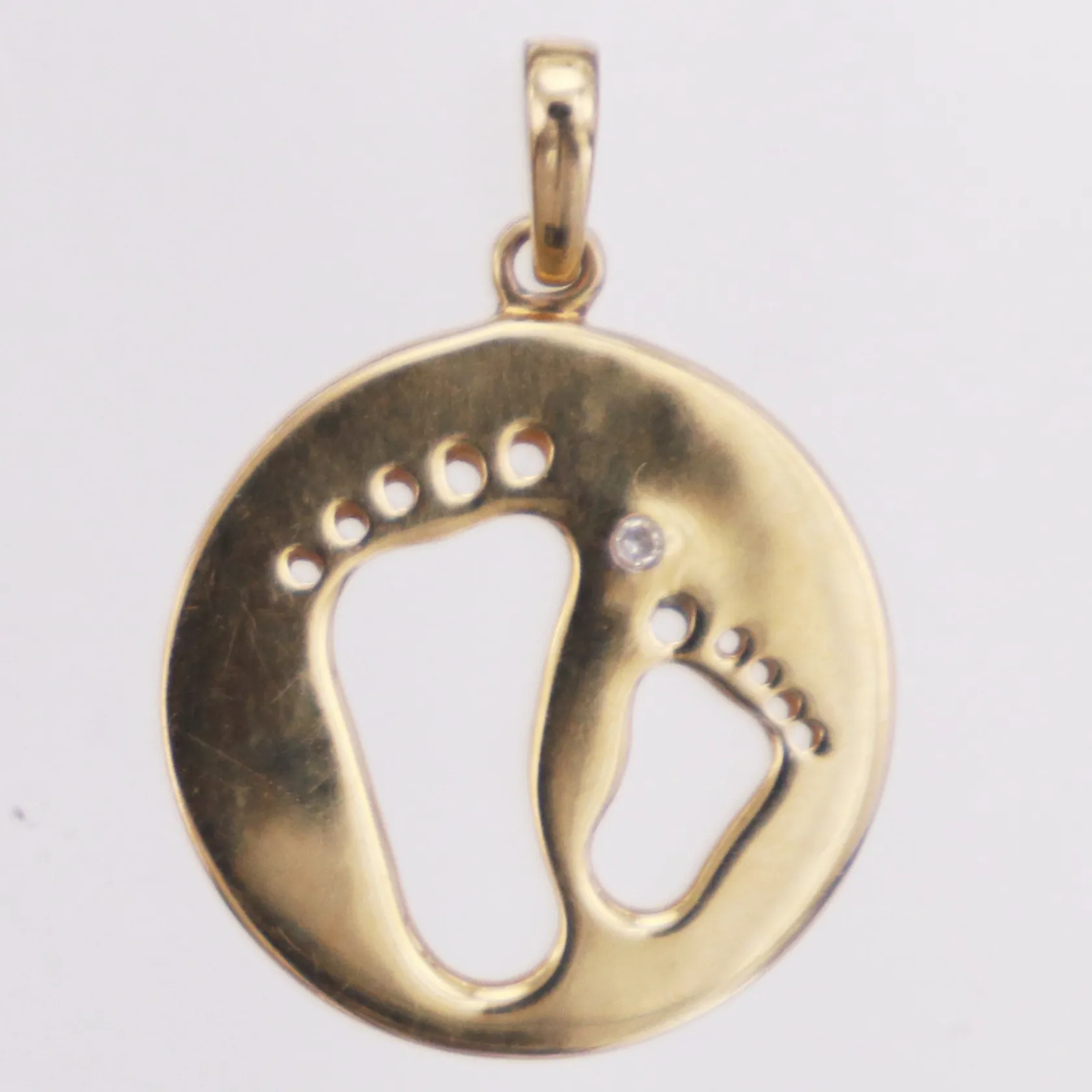 Hänge med fotavtryck, diamant 1x ca 0,01ct, ca 16x23mm, GHA 18K Vikt: 2,2 g.