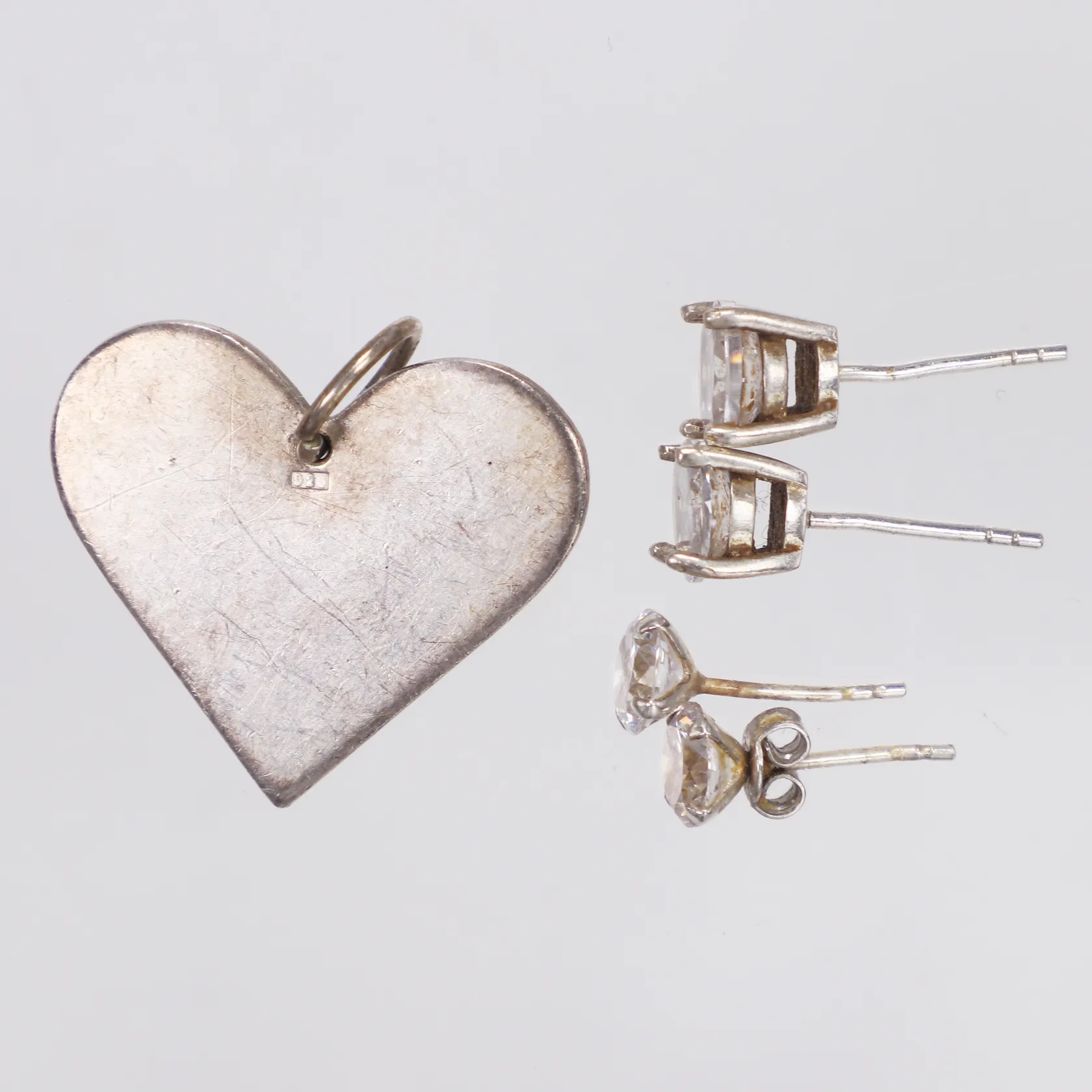 Hänge + 4 örknappar, stenar/gravyr/defekter/slitage, Silver Vikt: 7,7 g.