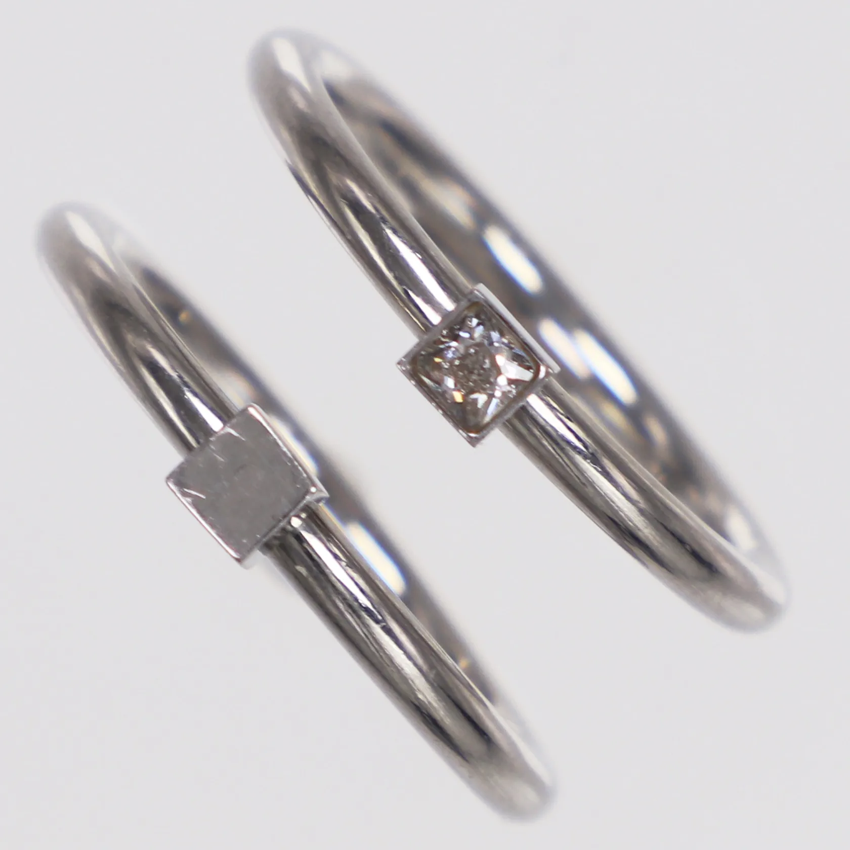 2 Tunna ringar Edblad, stl 17½, ena med sten, dekor 3,1mm, bredd 1,9mm, vitmetall