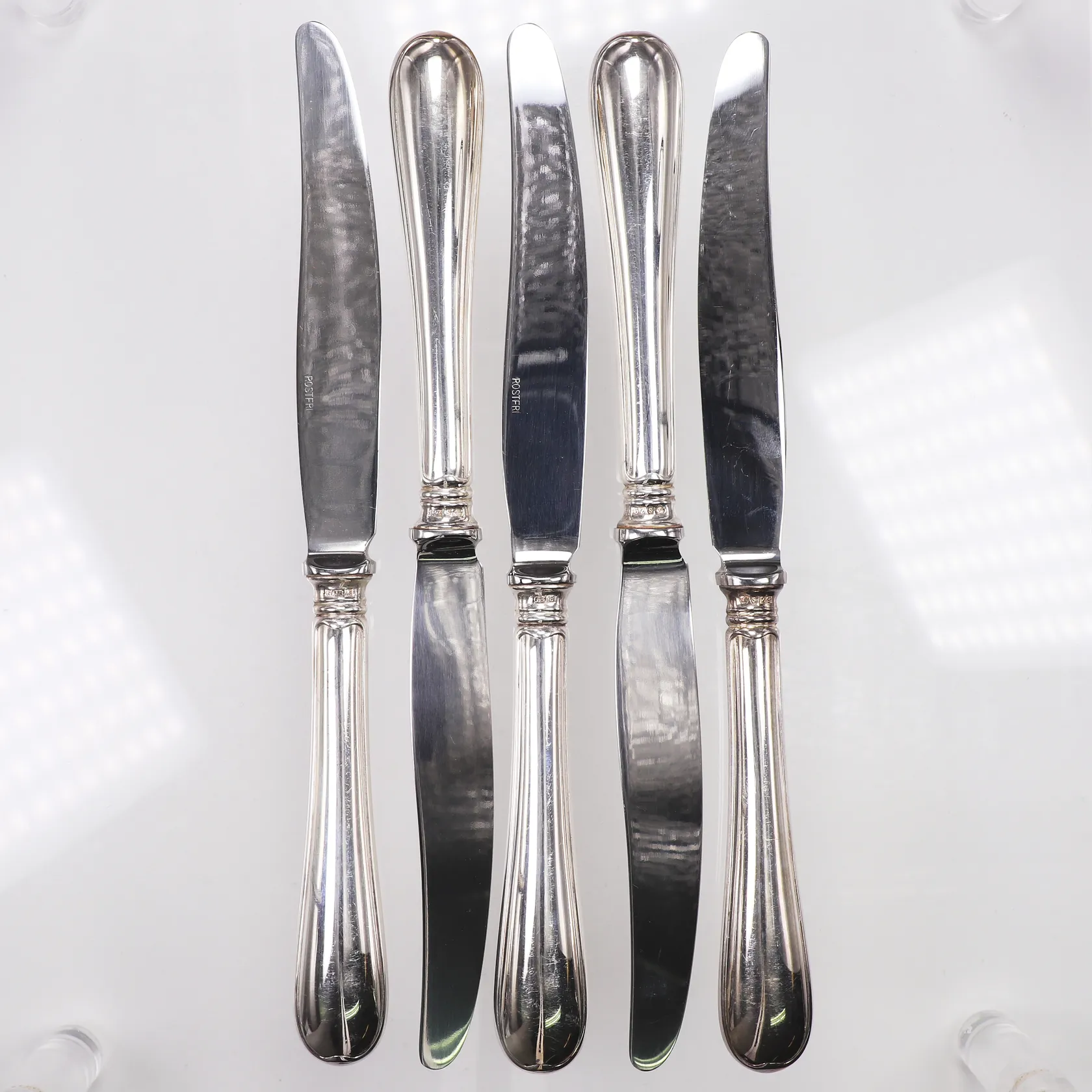 6 knivar, 20,5cm, GAB, blad i rostfritt stål, 830/1000 silver Vikt: 361,8 g.