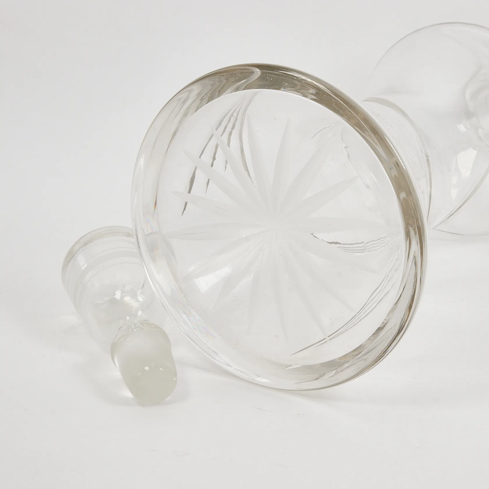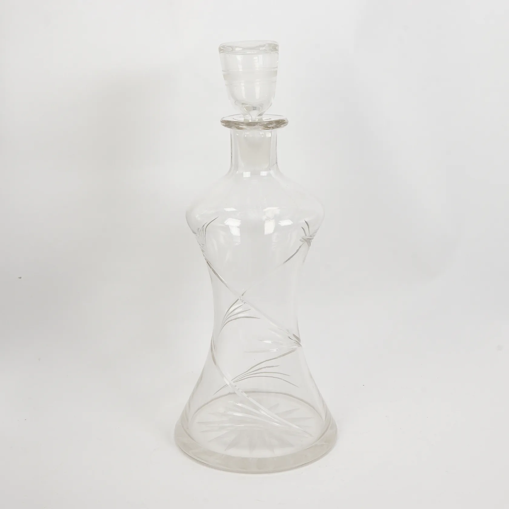 Karaff med propp, höjd inkl propp 31cm, ristad glas, okänd tillverkare Skickas med postpaket.