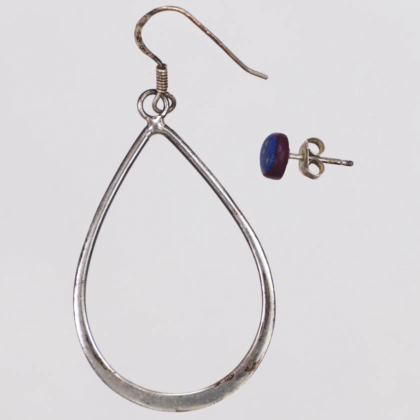 2 örhängen, udda, sten, silver Vikt: 2,2 g.