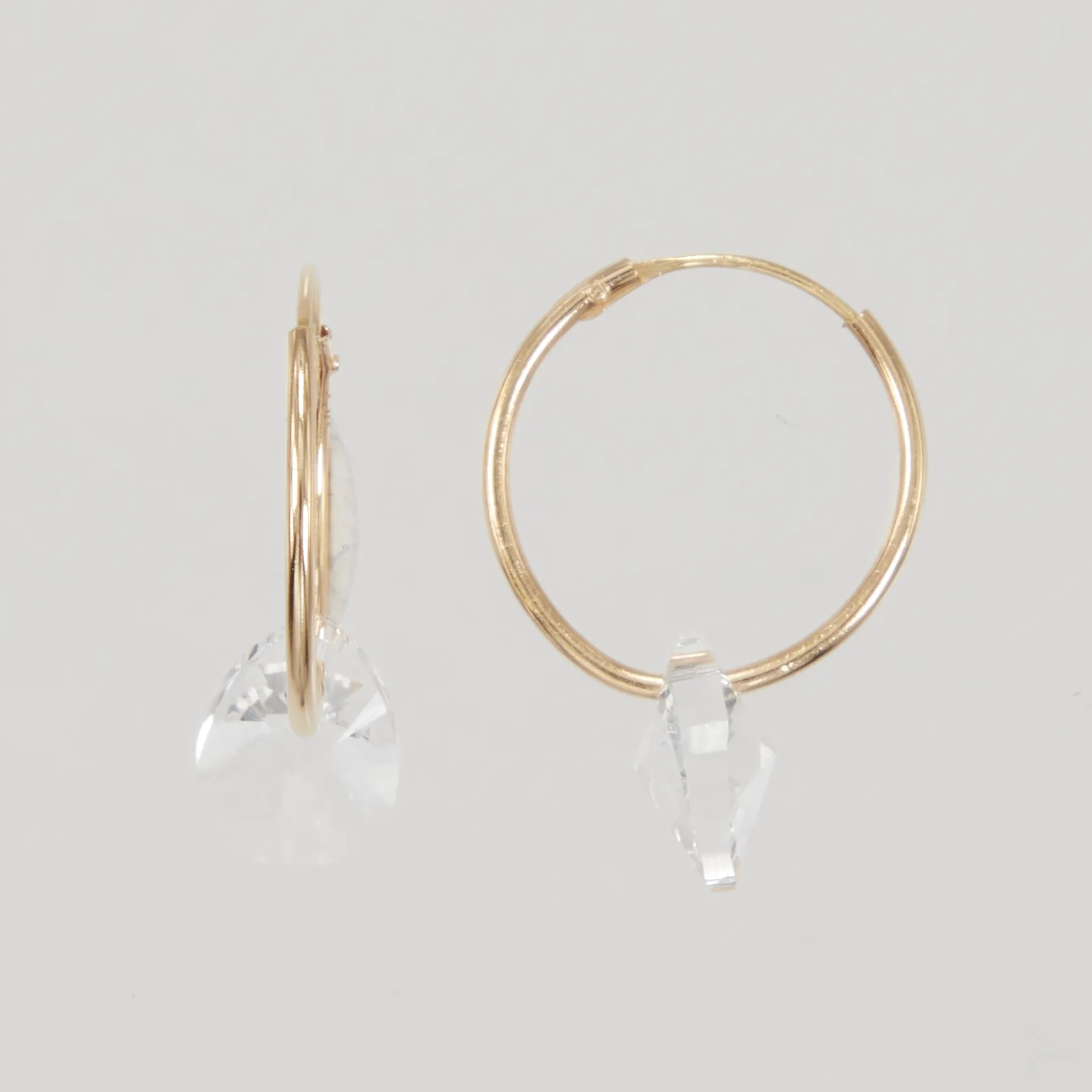 Ett par örhängen med vit sten, Ø14mm, bredd 0,9mm, 18K, Vikt: 1,4 g.