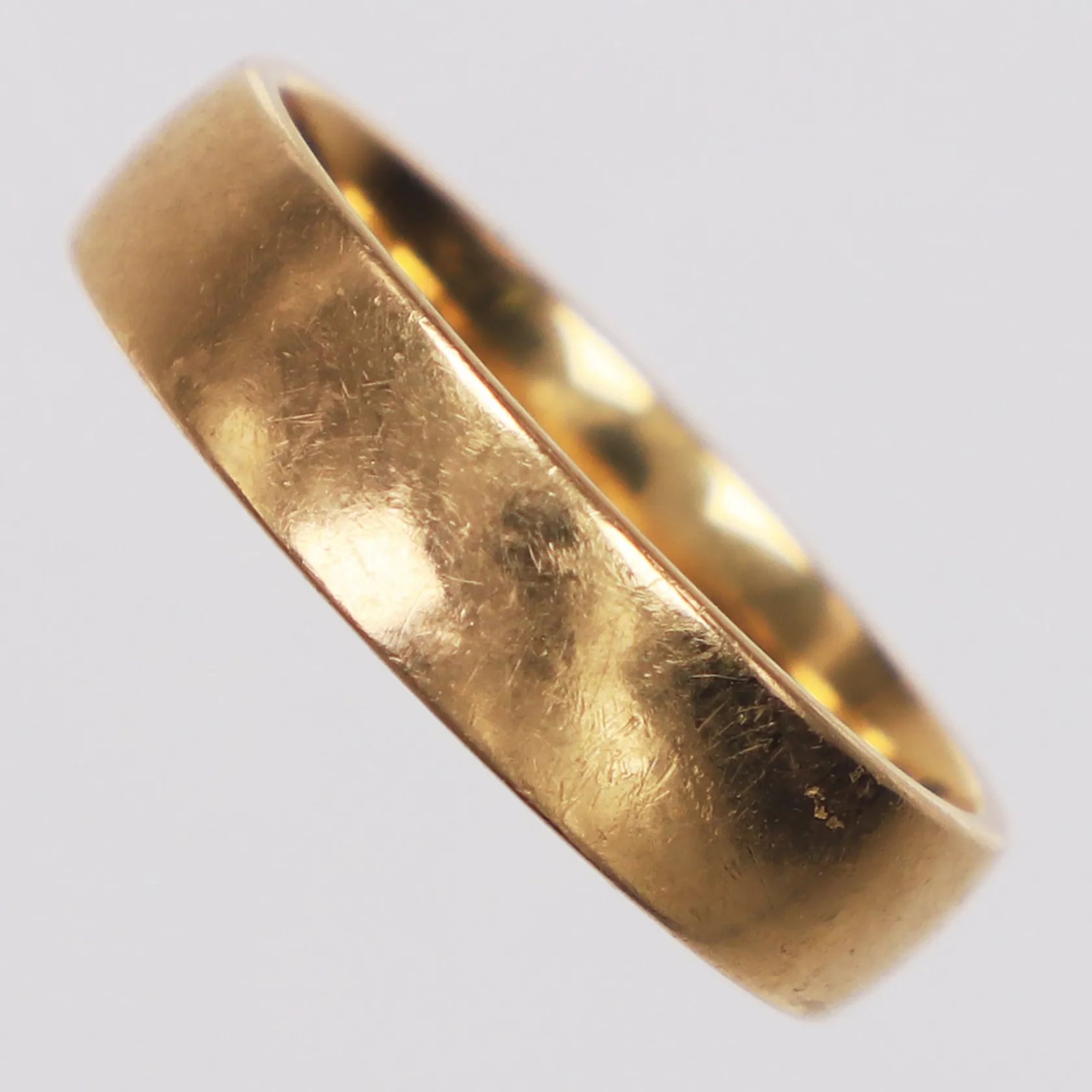 Ring, slät, stl 17¾, bredd 4,9mm, Schalins, 18K Vikt: 5,8 g.