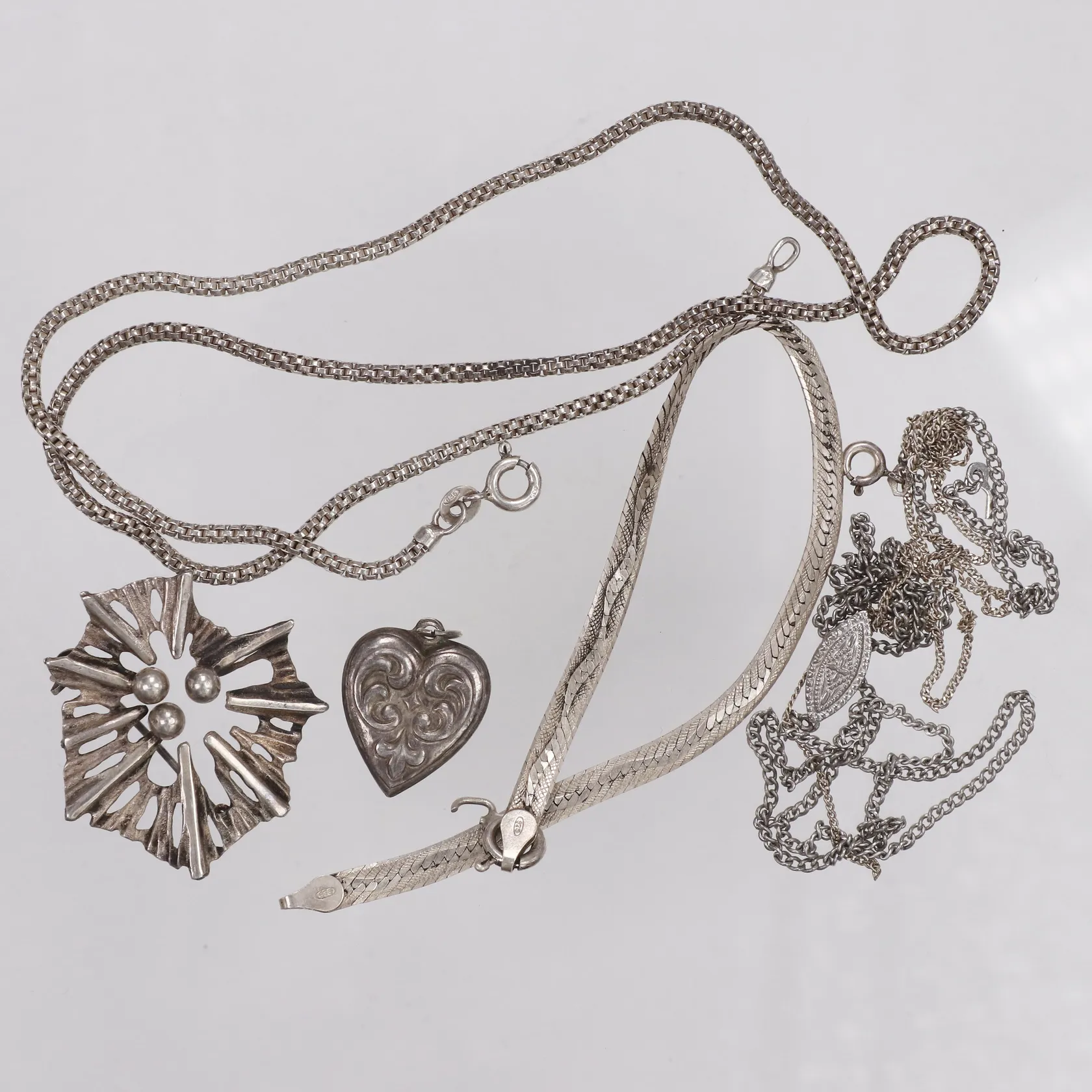 Diverse silver, ojämnheter, defekt/av, bucklor, delvis ostämplad, 830-925/1000 silver Vikt: 18,6 g.