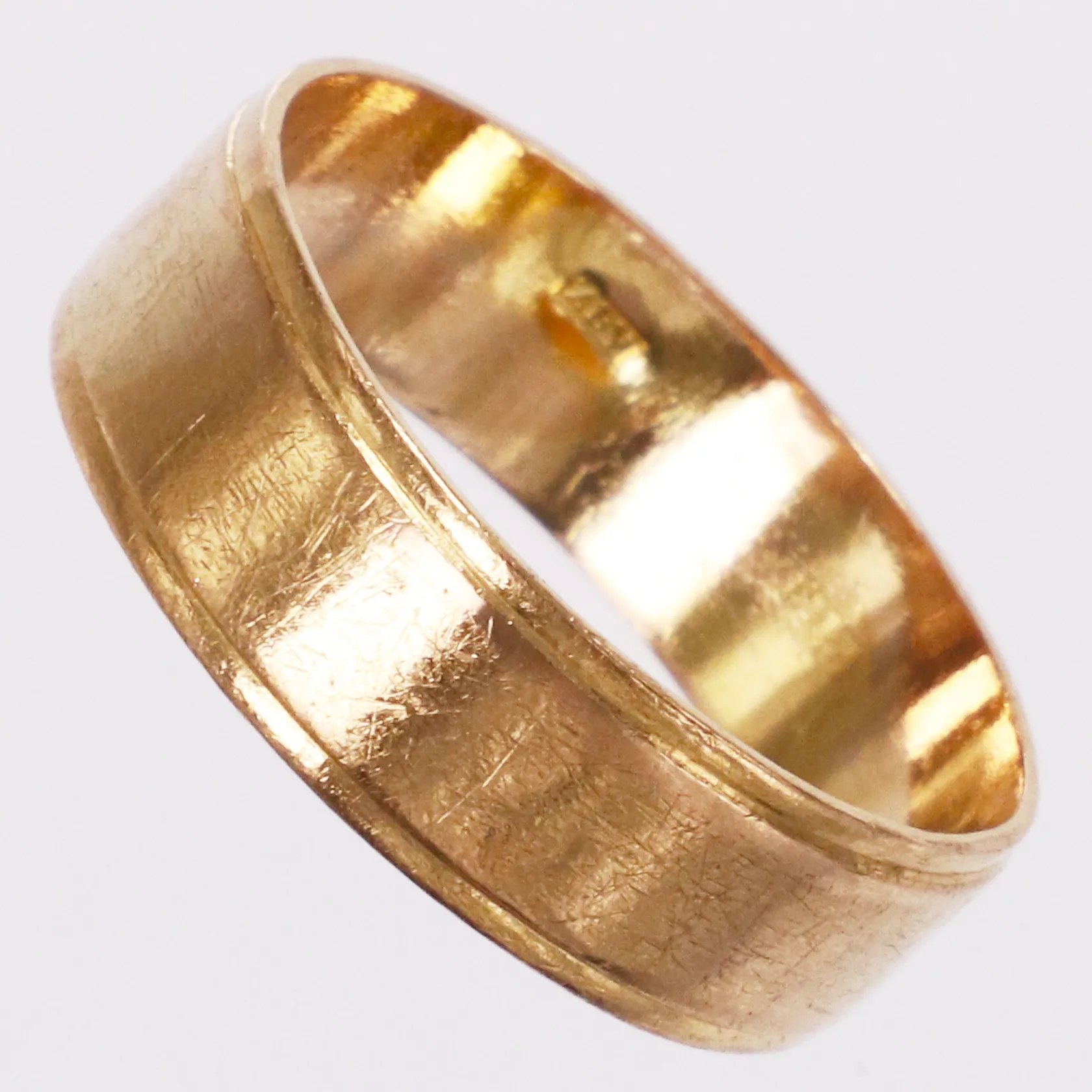 Ring, slät, stl 18¼, bredd 5,8mm, repig, 21K Vikt: 4 g.