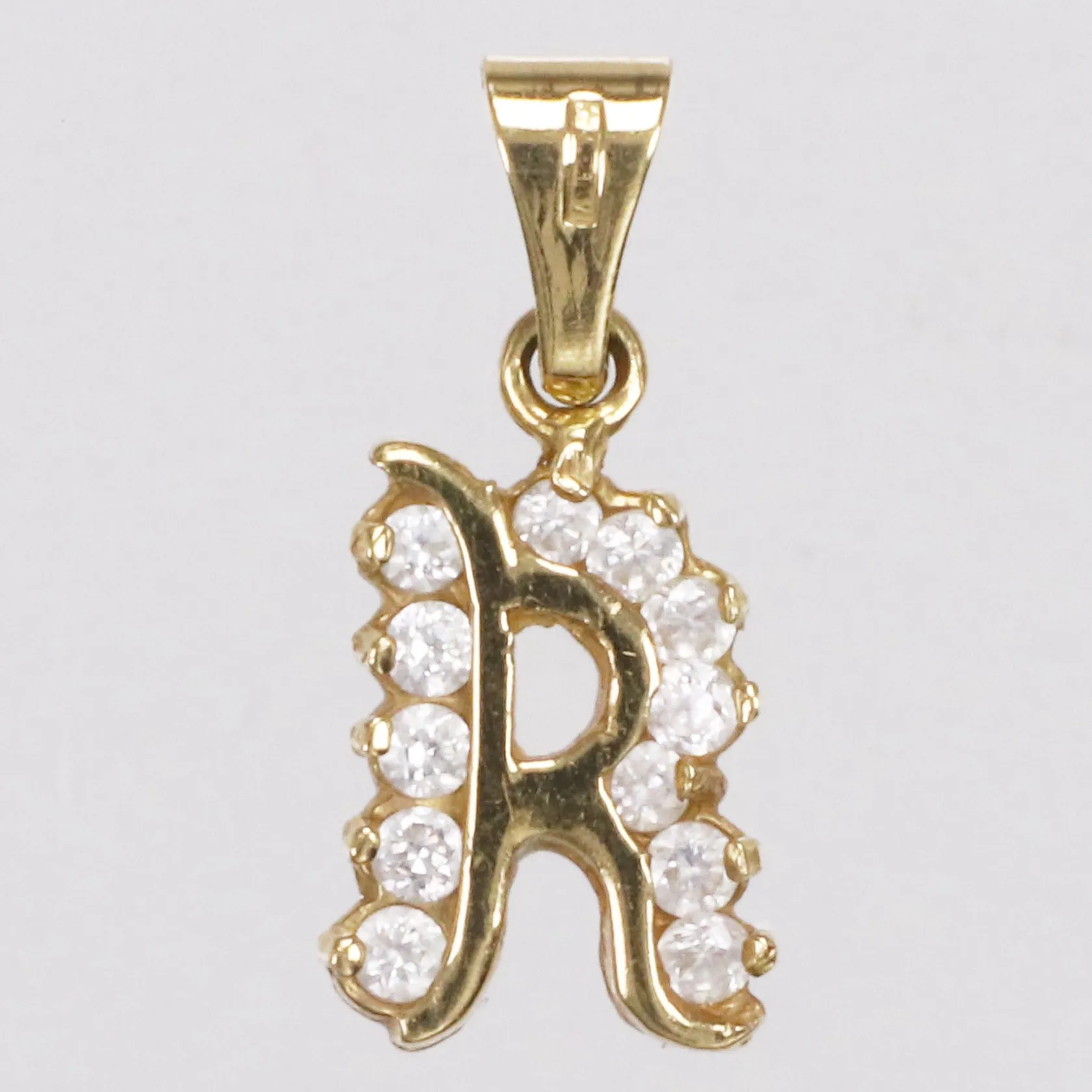 Hänge, bokstaven R, vita stenar, 20mm, 18K Vikt: 1,6 g.
