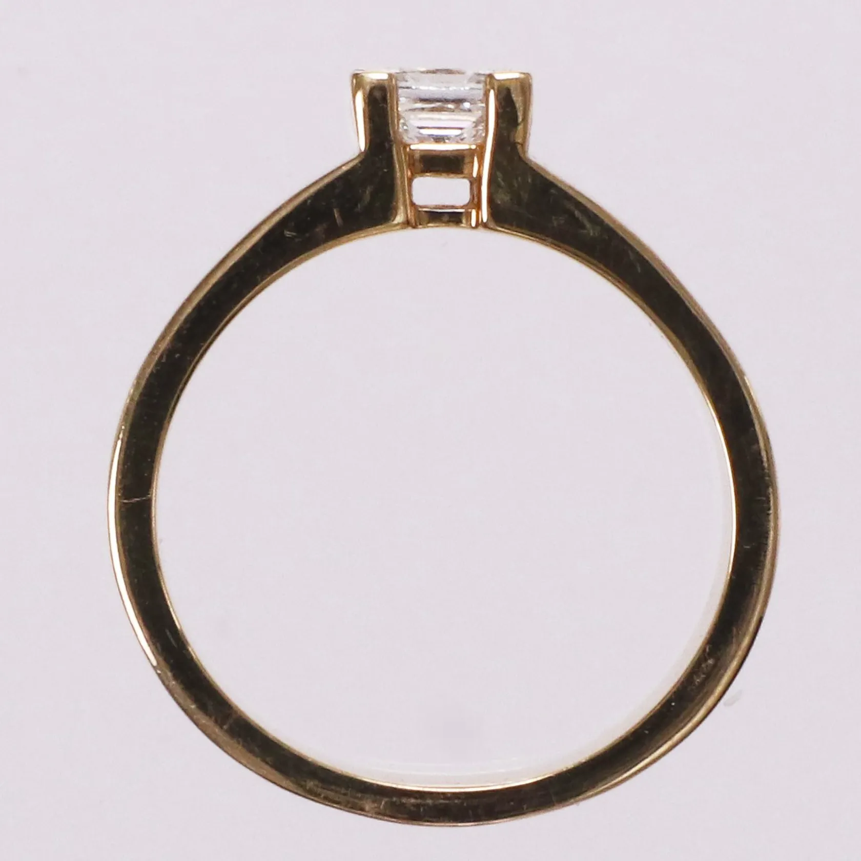 Ring med prinsesslipade diamanter ca0,80ct totalt, WSI enligt gravyr, stl 17, bredd 5-5,3mm, GHA, 18K Vikt: 7,1 g.