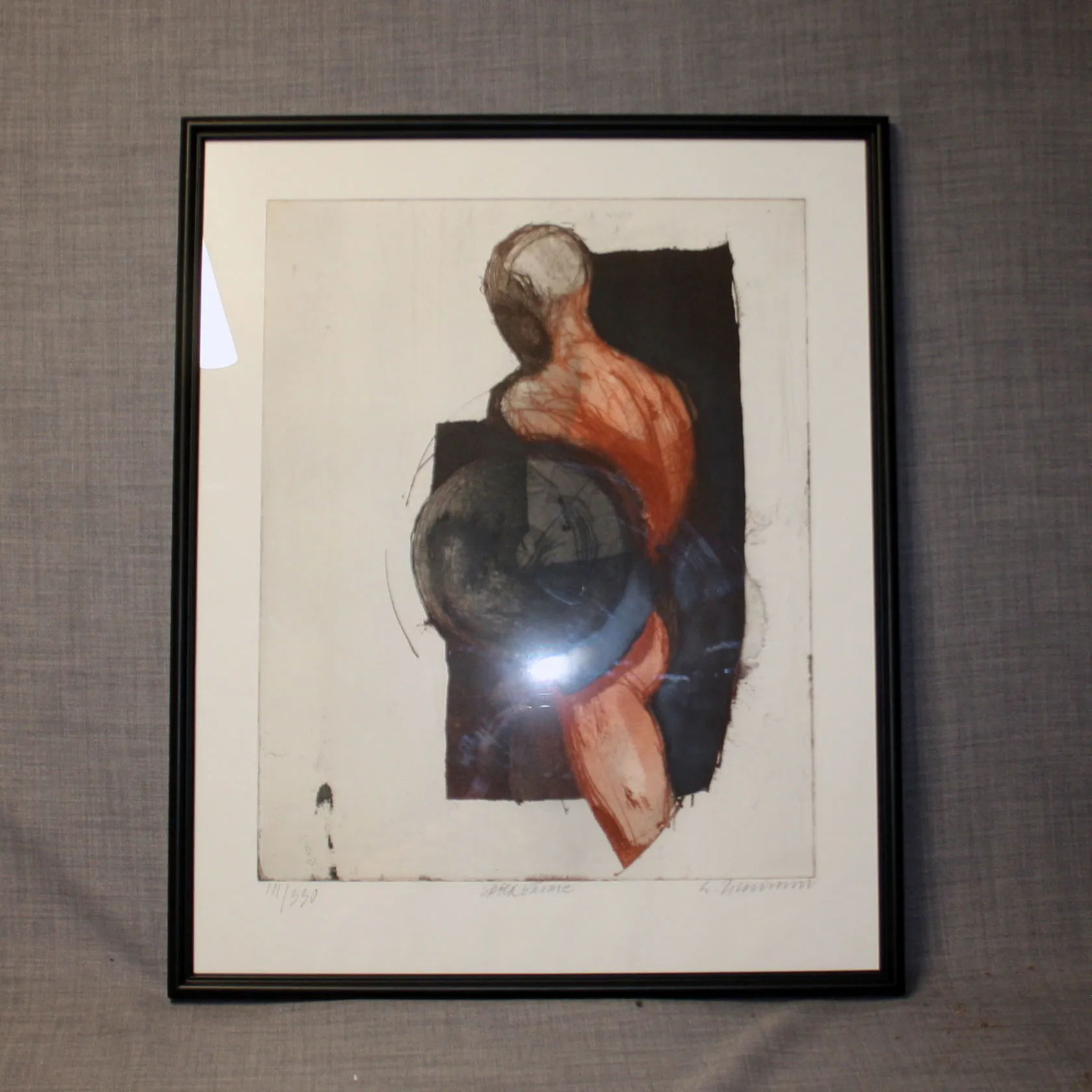 Etsning av Lars Johansson, "sköldbärare" signerad samt numrerad 101/330, plåtstorlek ca 49x39cm, mått på ram ca 52x63cm Skickas med postpaket.