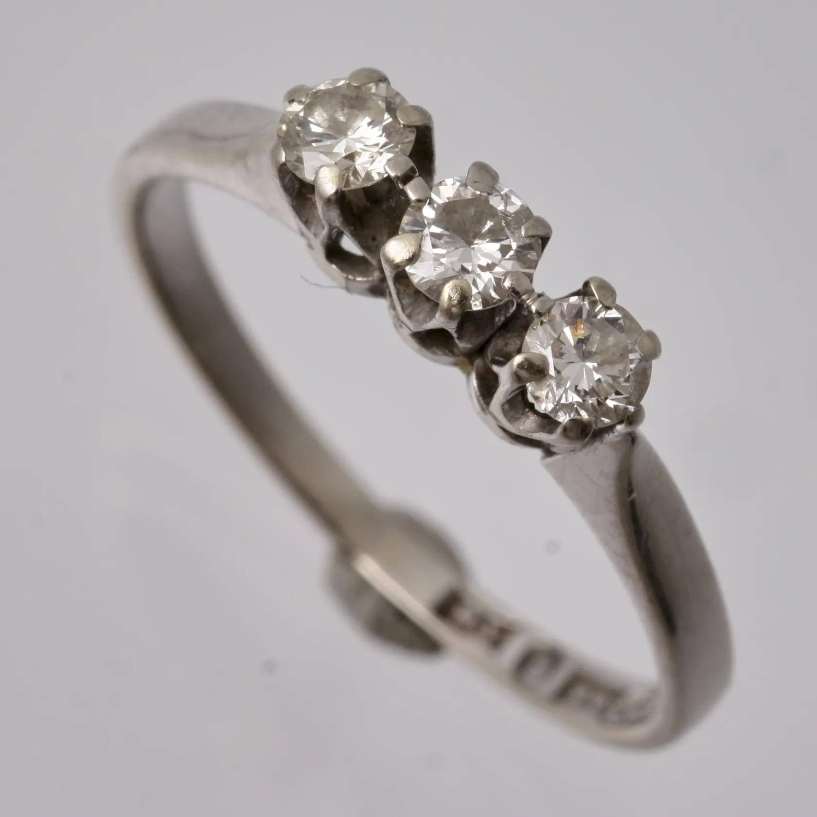 Ring i 18K vitguld, Ø17, 3st diamanter ca 0,13ct, totalt 0,39ct, tillverkad av Waleby Juvelerare Oskar, vikt 2,3g. Vikt: 2,3 g.