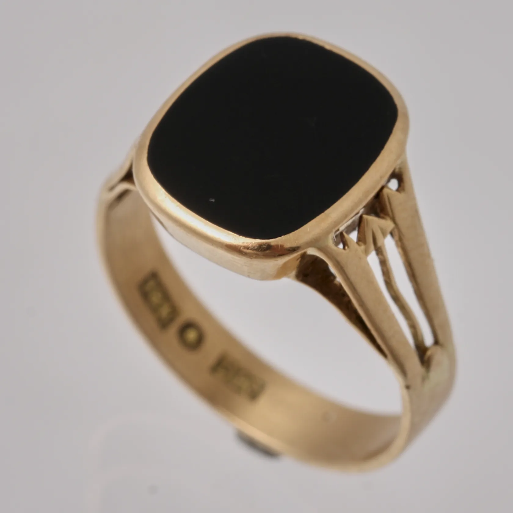 Klackring i 18K guld, stl 17, bredd 3,9-12,6mm, 1st Onyx, mått 9,6x11,6mm, vikt 3,3g. Vikt: 3,3 g.
