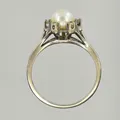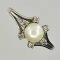 Ring med diamanter 6x0,01ct och odlad pärla Ø6 mm, stl 17½, bredd 2-9 mm, vitguld, 14K. Vikt: 3 g.