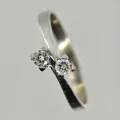 Ring med diamant 2x0,12ct, stl 19¼, bredd 3-7 mm, vitguld, 18K. Vikt: 3 g.