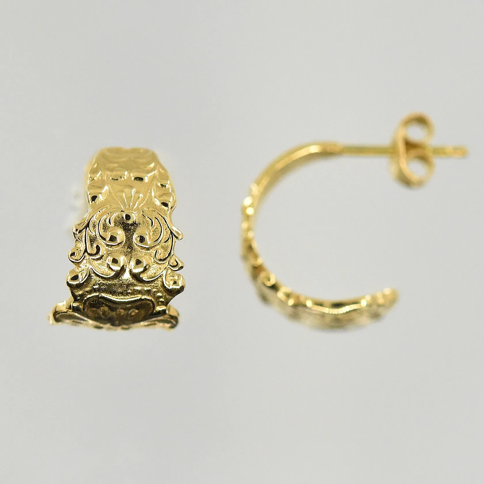 Ett par örhängen, "Hälsingesmycken", längd 15 mm, bredd 4-10 mm, fint skick, 18K. Vikt: 4,8 g.