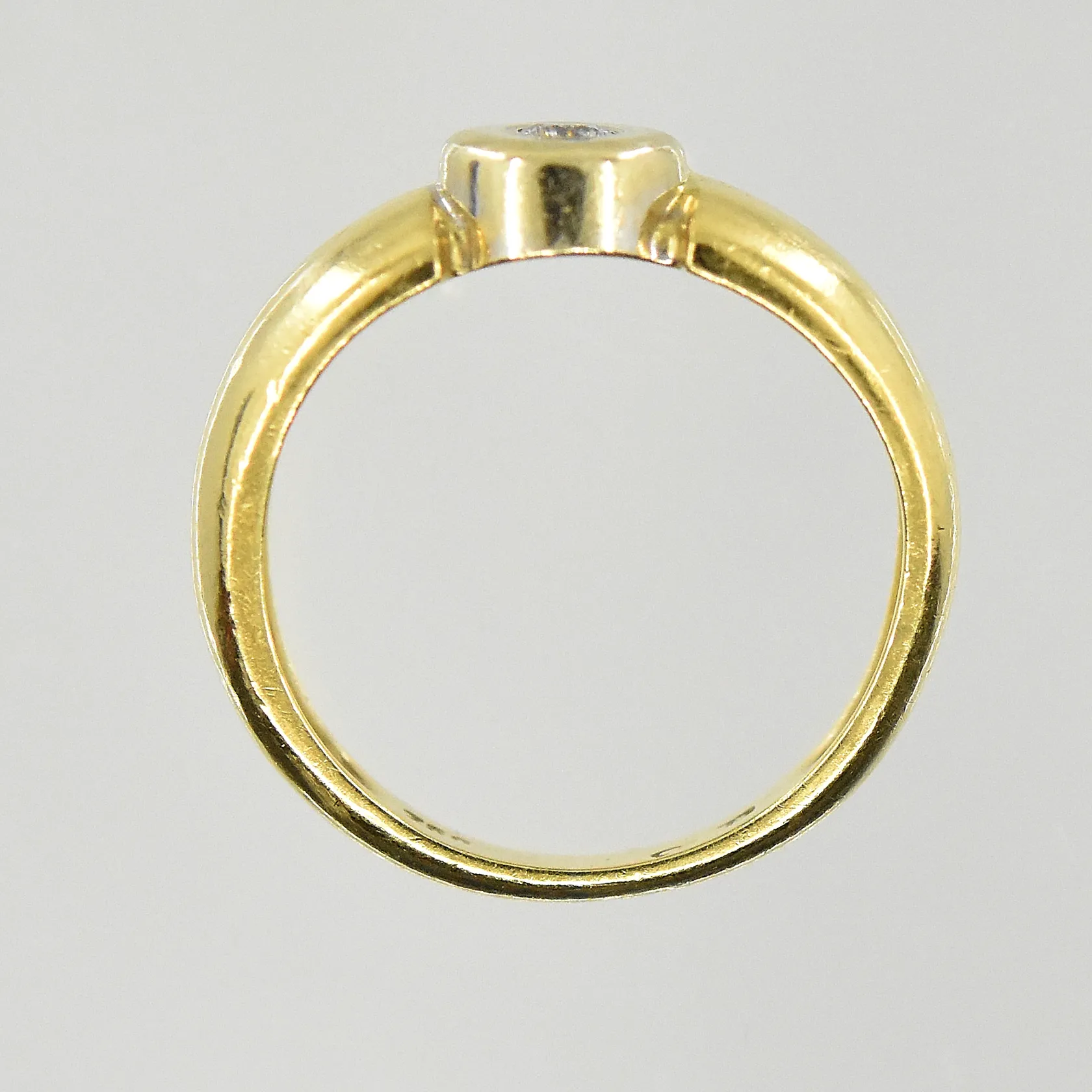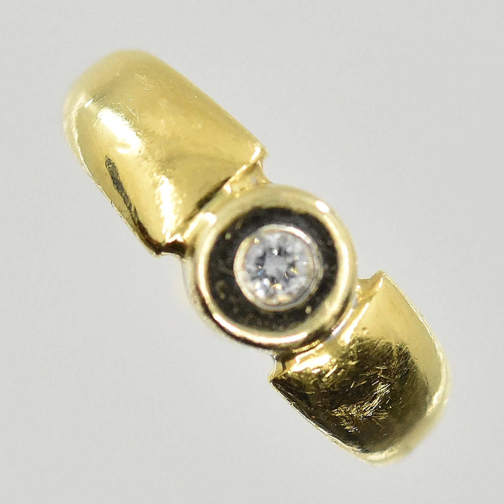 Ring med diamant 0,05ct, stl 16, bredd 3-6 mm, 18K. Vikt: 4,7 g.
