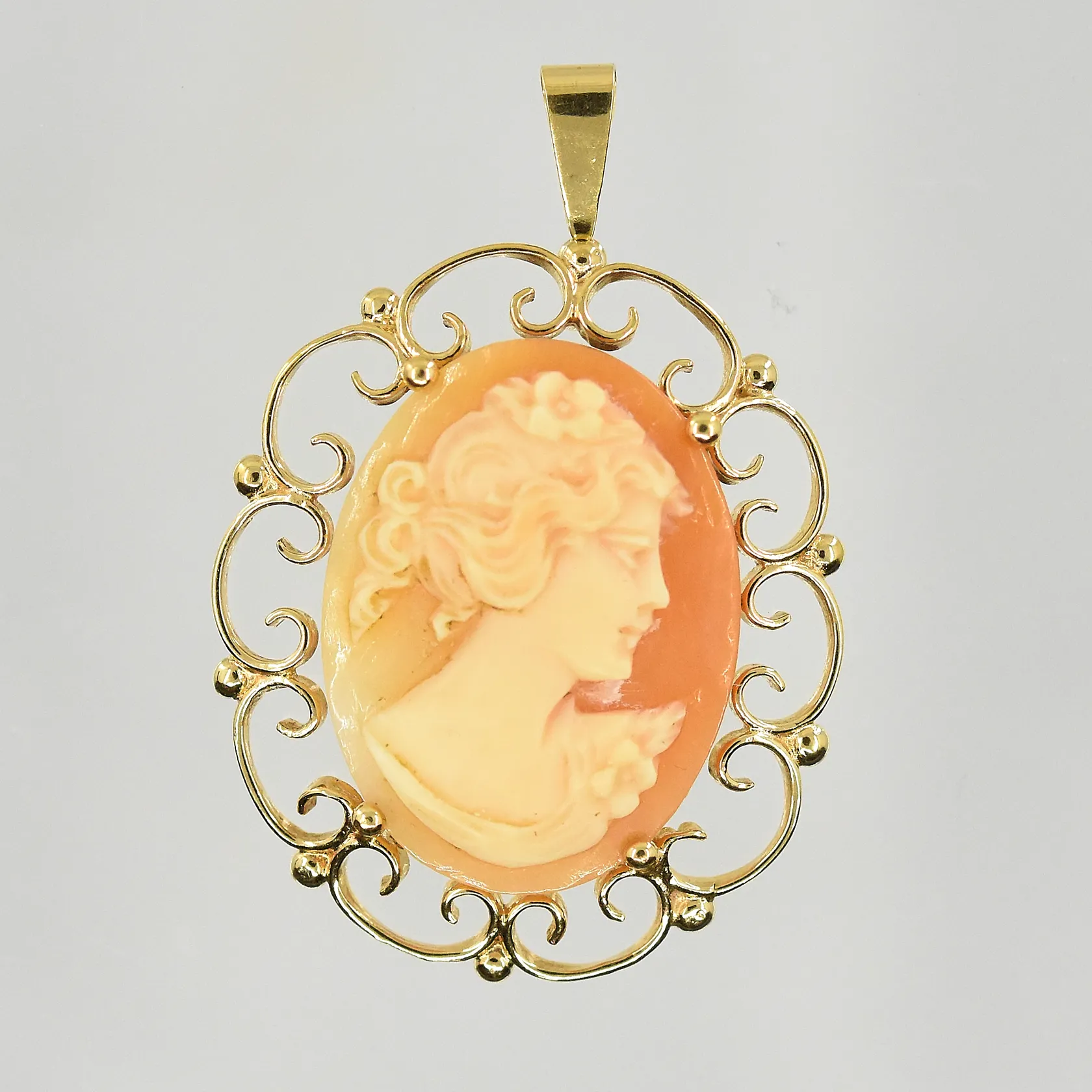 Hänge med Camé, längd 40 mm, bredd 29 mm, 18K. Vikt: 6,3 g.