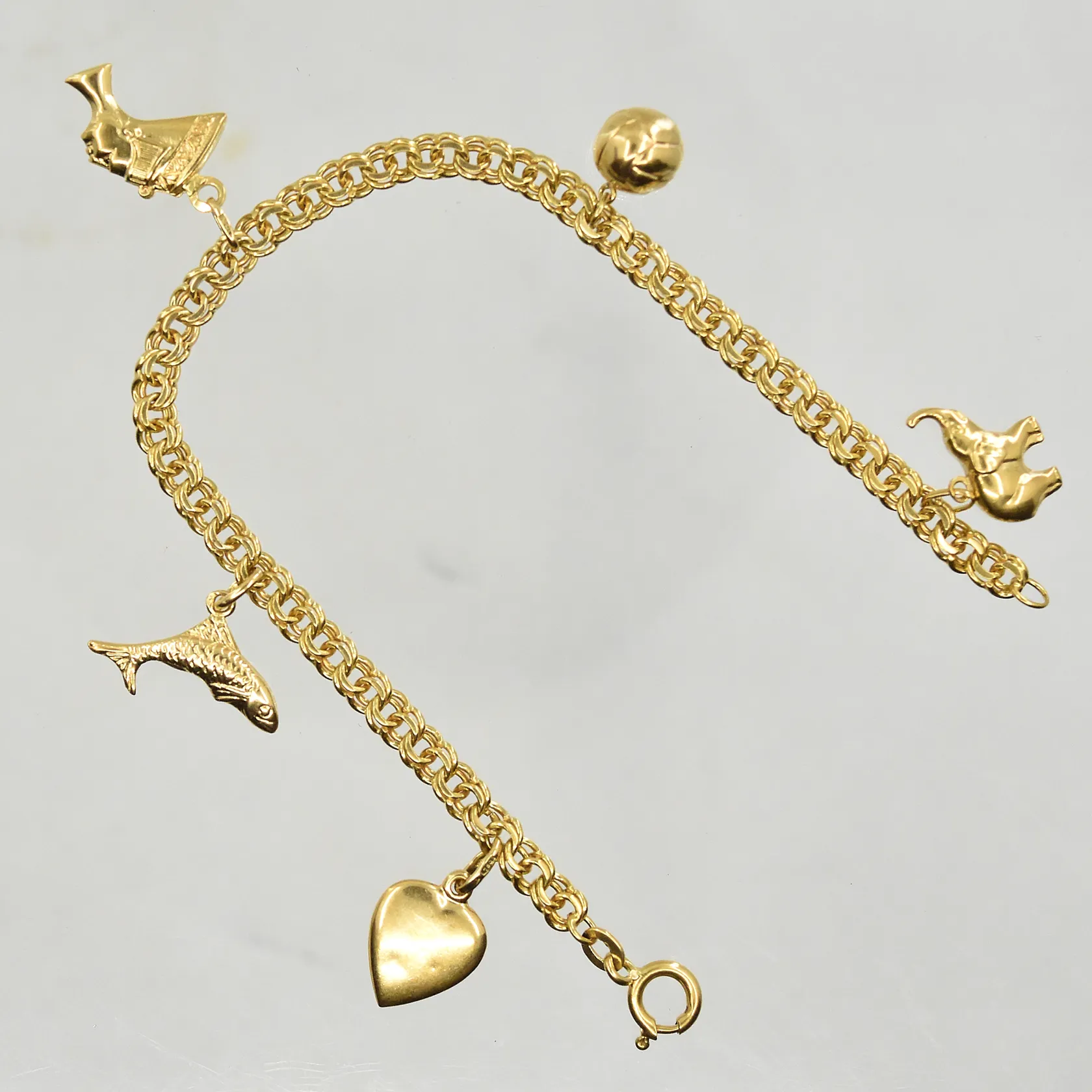 Armband Bismarck med 5 berlocker, längd 20 cm, länkens bredd 4 mm, 18K. Vikt: 16,6 g.