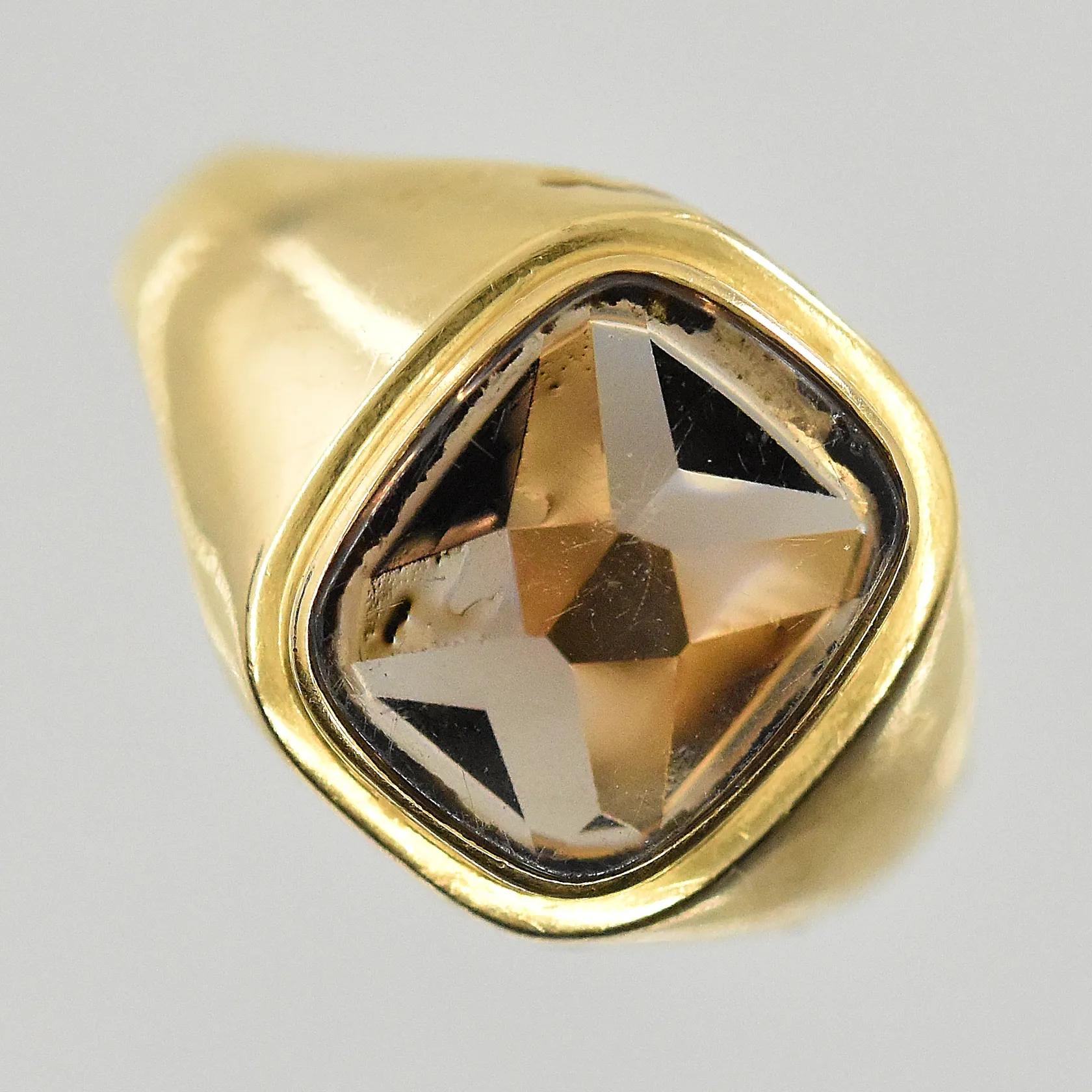 Klackring med brun sten, stl 20¼, bredd 4-15 mm, 18K. Vikt: 5,5 g.