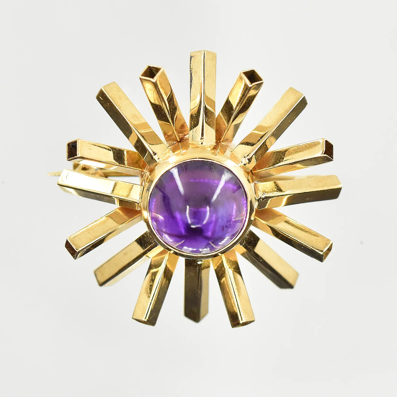 Brosch med Ametist, Ø27 mm, 18K. Vikt: 6,8 g.