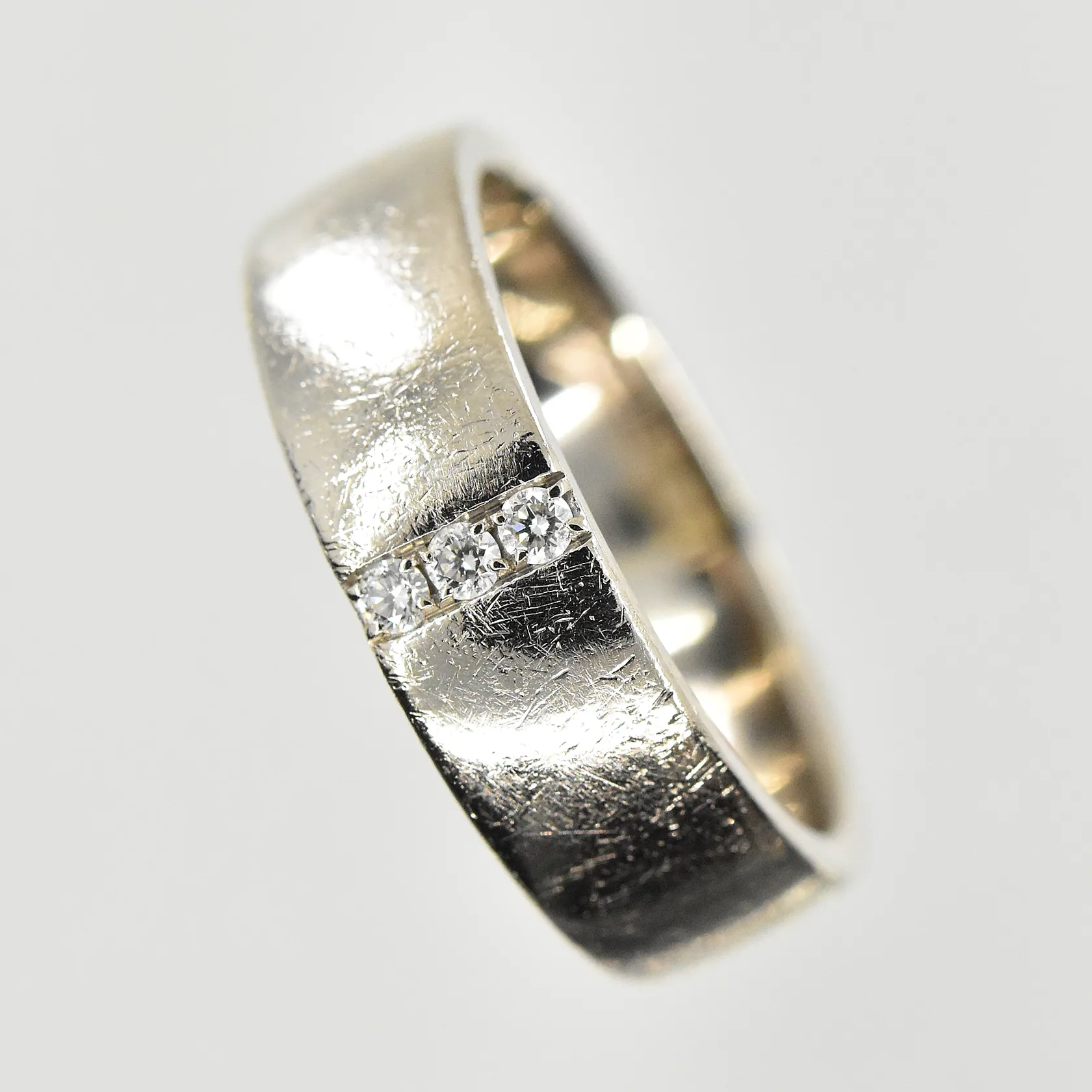 Ring med diamanter 3x0,01ct, stl 17¼, bredd 6 mm, vitguld, 18K. Vikt: 8,4 g.