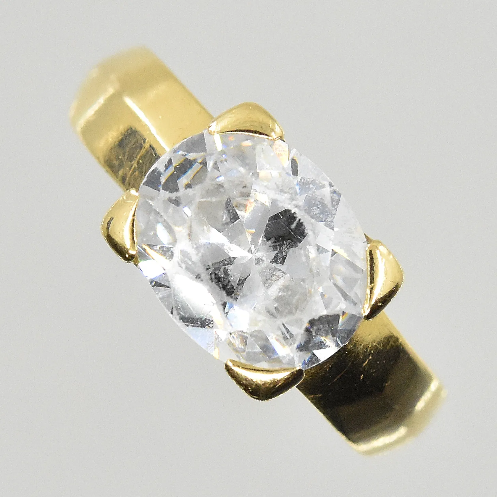 Ring med vit sten, stl 16¾, bredd 3-8 mm, gravyr, 18K. Vikt: 4,9 g.