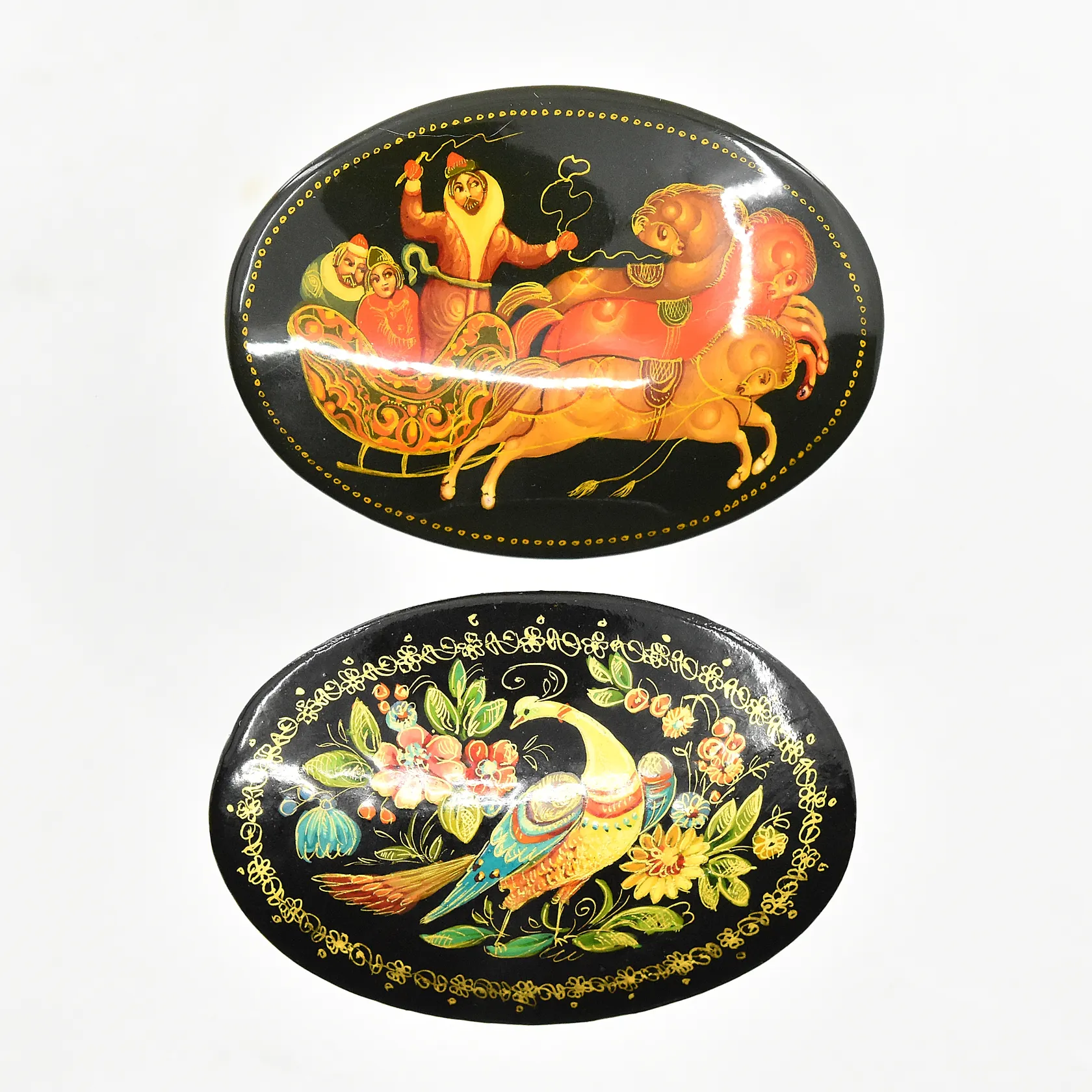 2 broscher, ryska, stl ca 60x40 mm, lackat trä