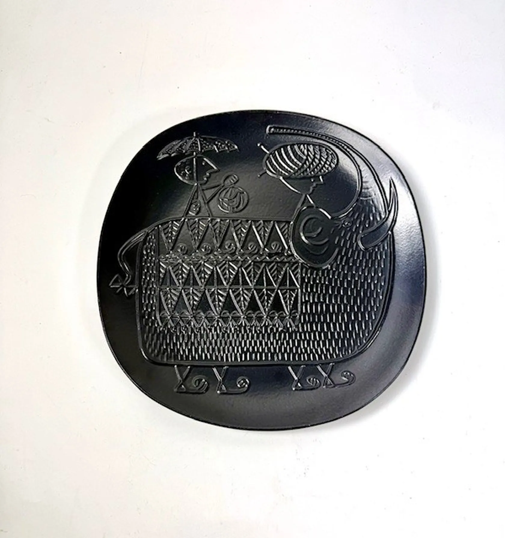 Fat, Piazza, design Stig Lindberg, Gustavsberg, 1960-tal, stl 26x26 cm, svart flintporslin
