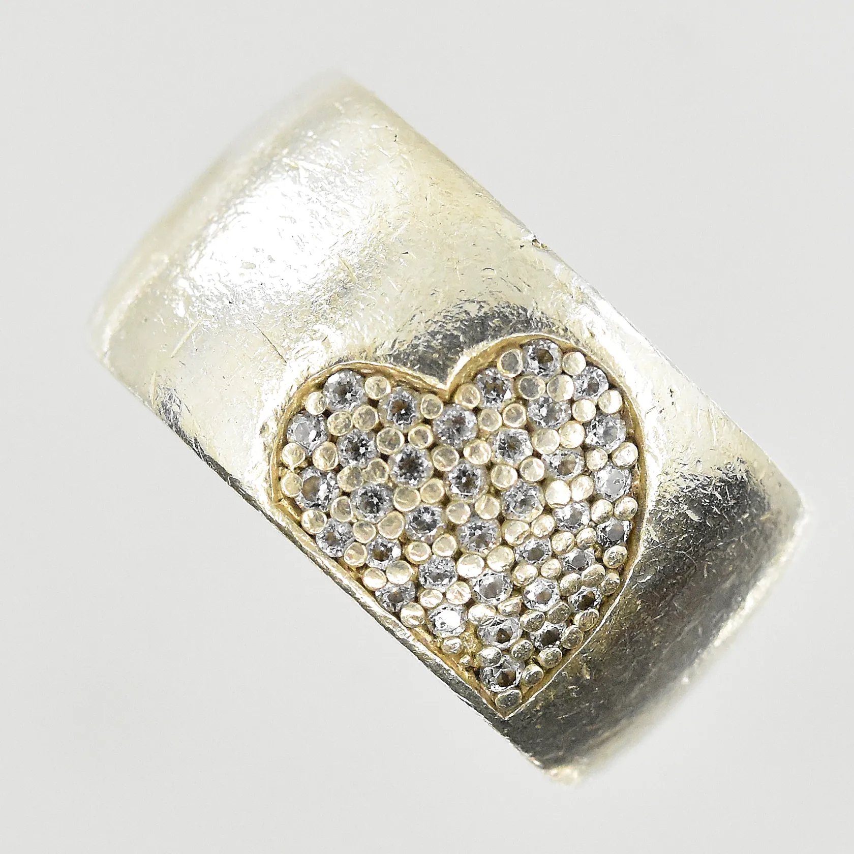 Ring med hjärta med vita stenar, Thomas Sabo, stl 16½, bredd 12 mm, 925/1000 silver. Vikt: 19,1 g.