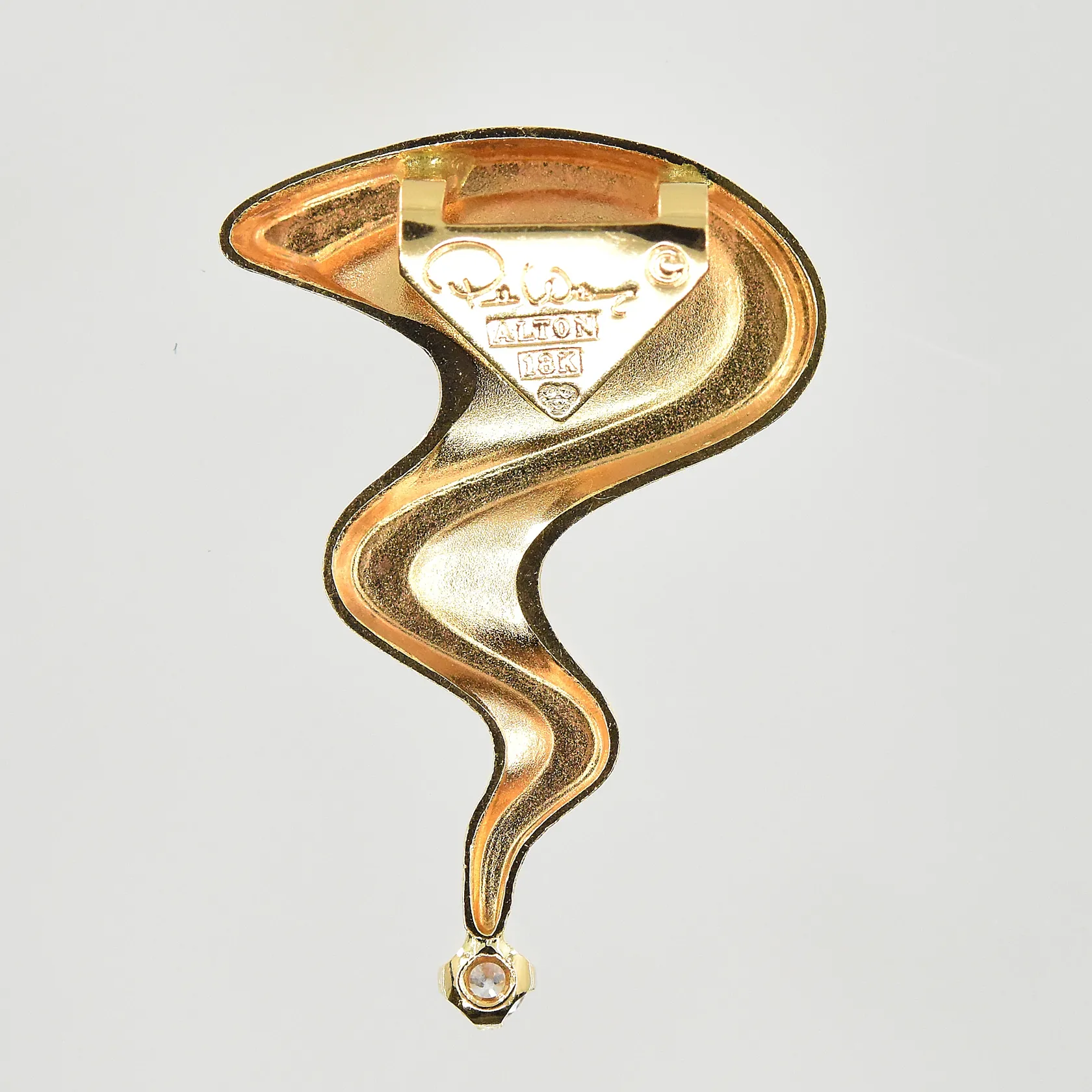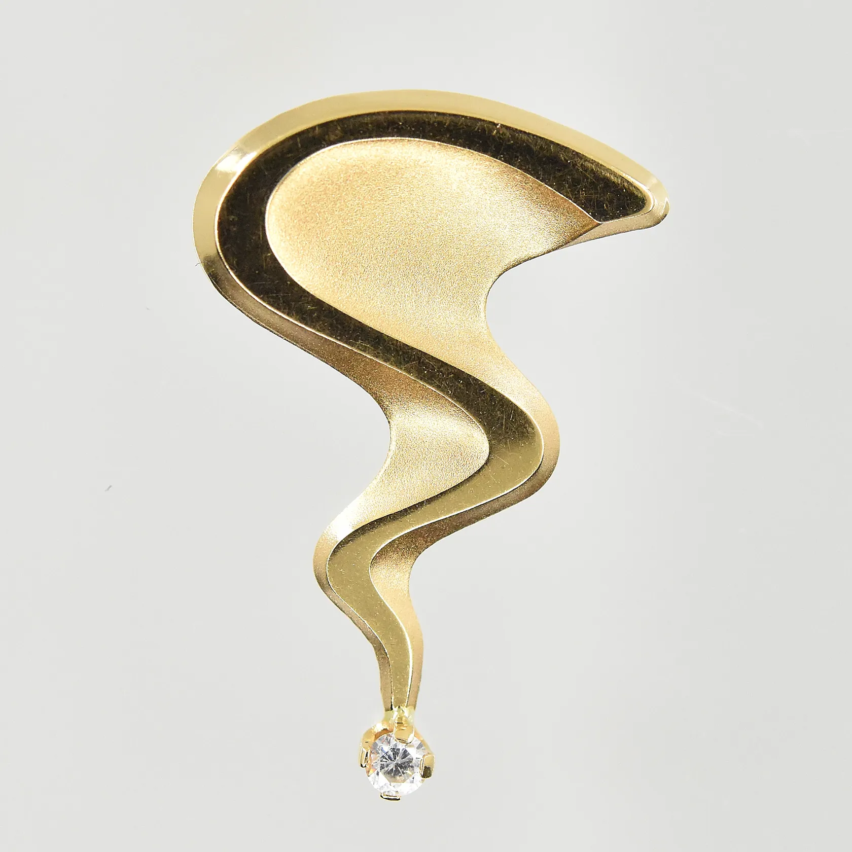 Hänge med vit sten, Pernilla Wiberg, längd 23 mm, bredd 16 mm, 18K. Vikt: 1,4 g.