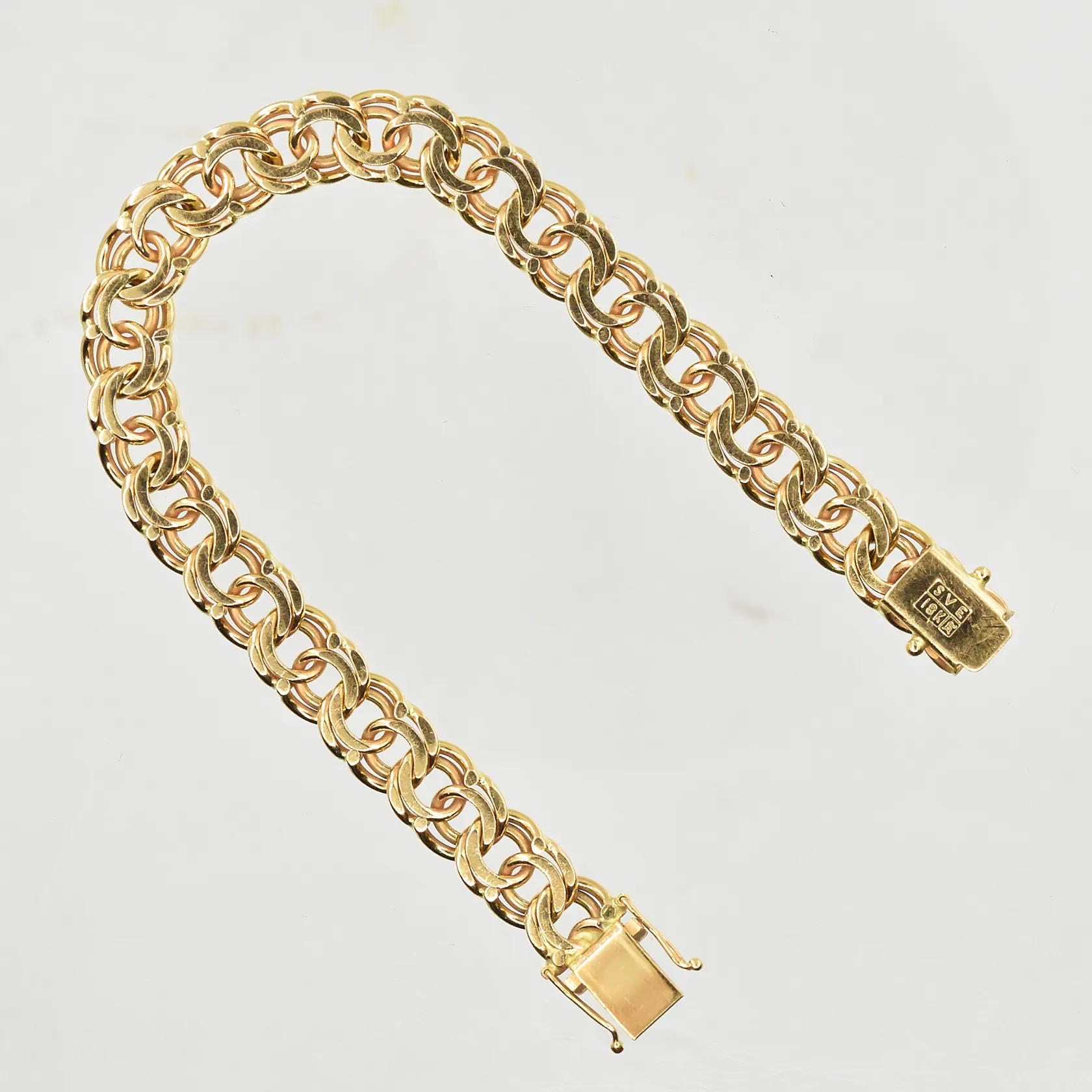 Armband Bismarck, längd 19 cm, bredd 8 mm, 18K. Vikt: 30 g.