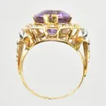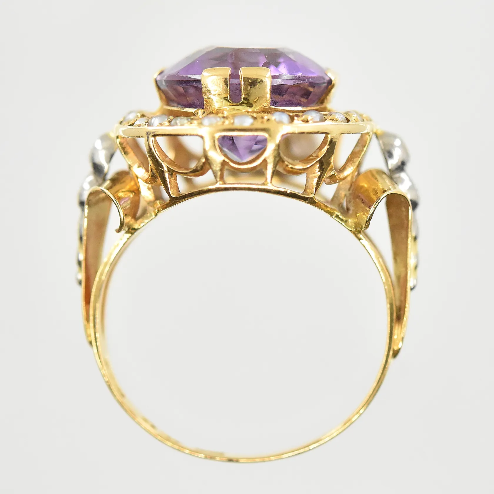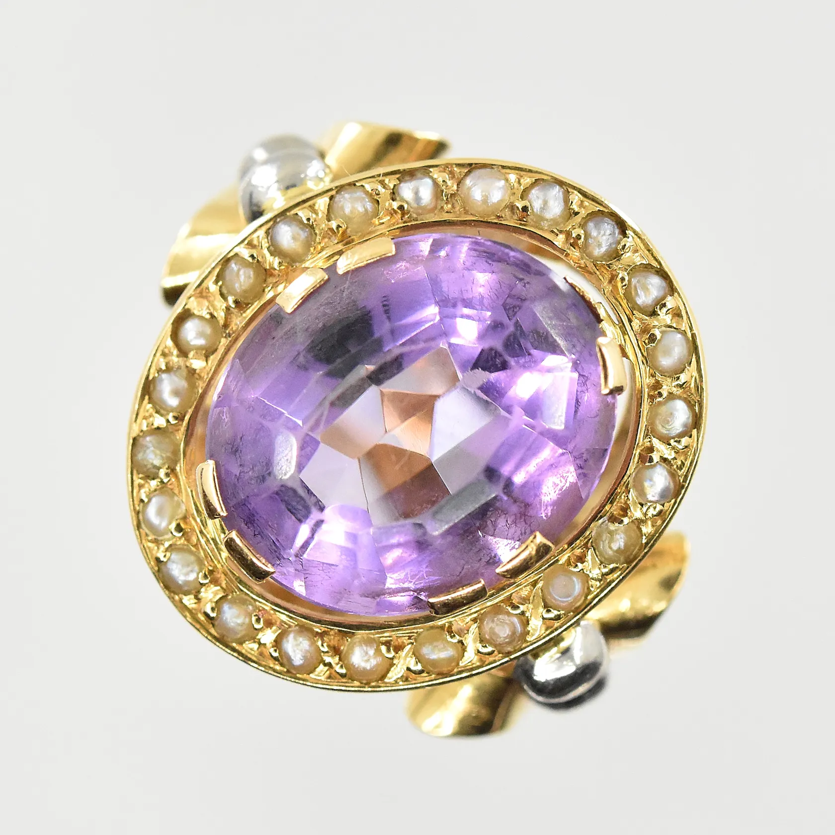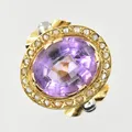 Ring med lila sten och orientaliska pärlor, stl 16¾, bredd 3-19 mm, 18K. Vikt: 5,2 g.