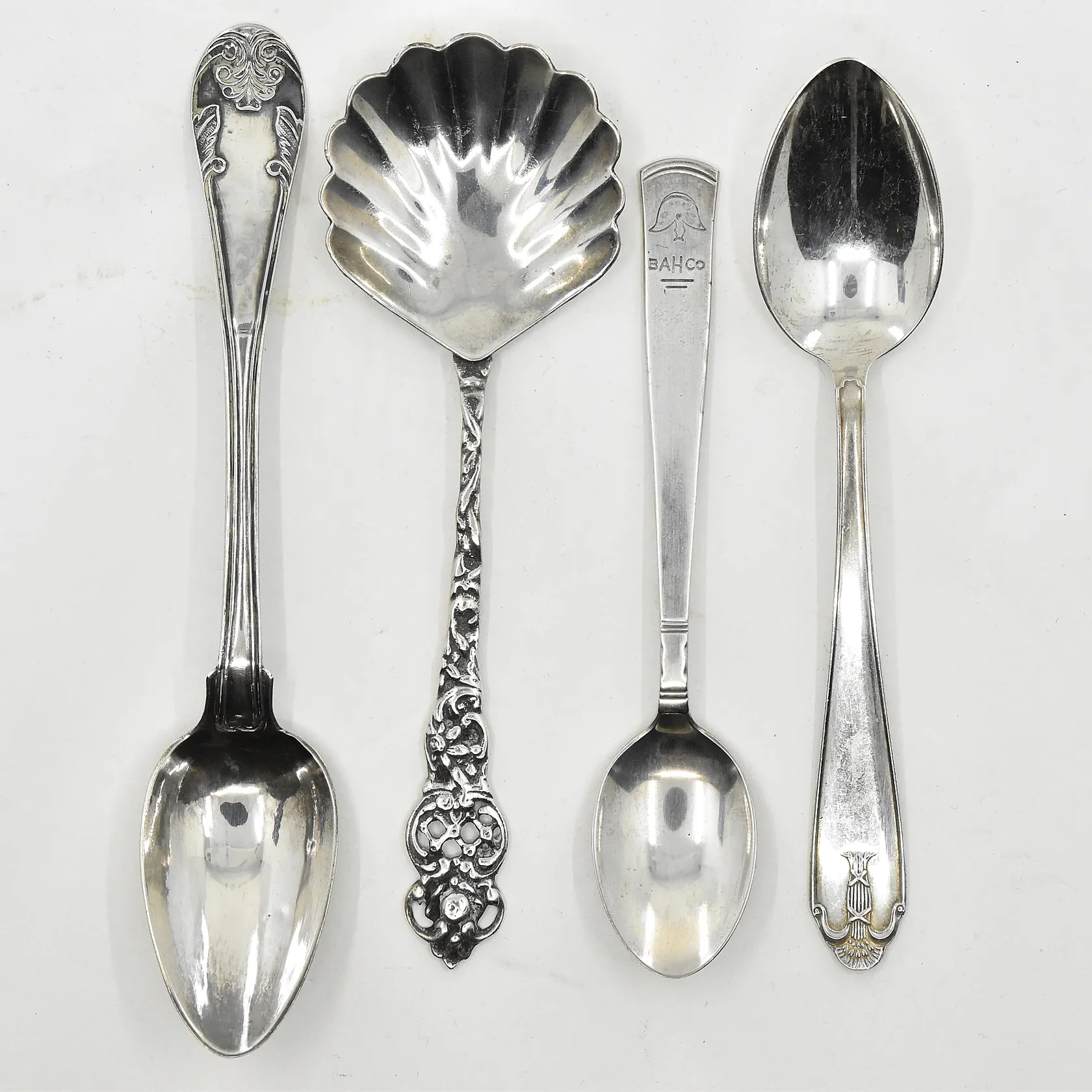 4 olika skedar, längd 10½-13½ cm, silver. Vikt: 50,6 g.