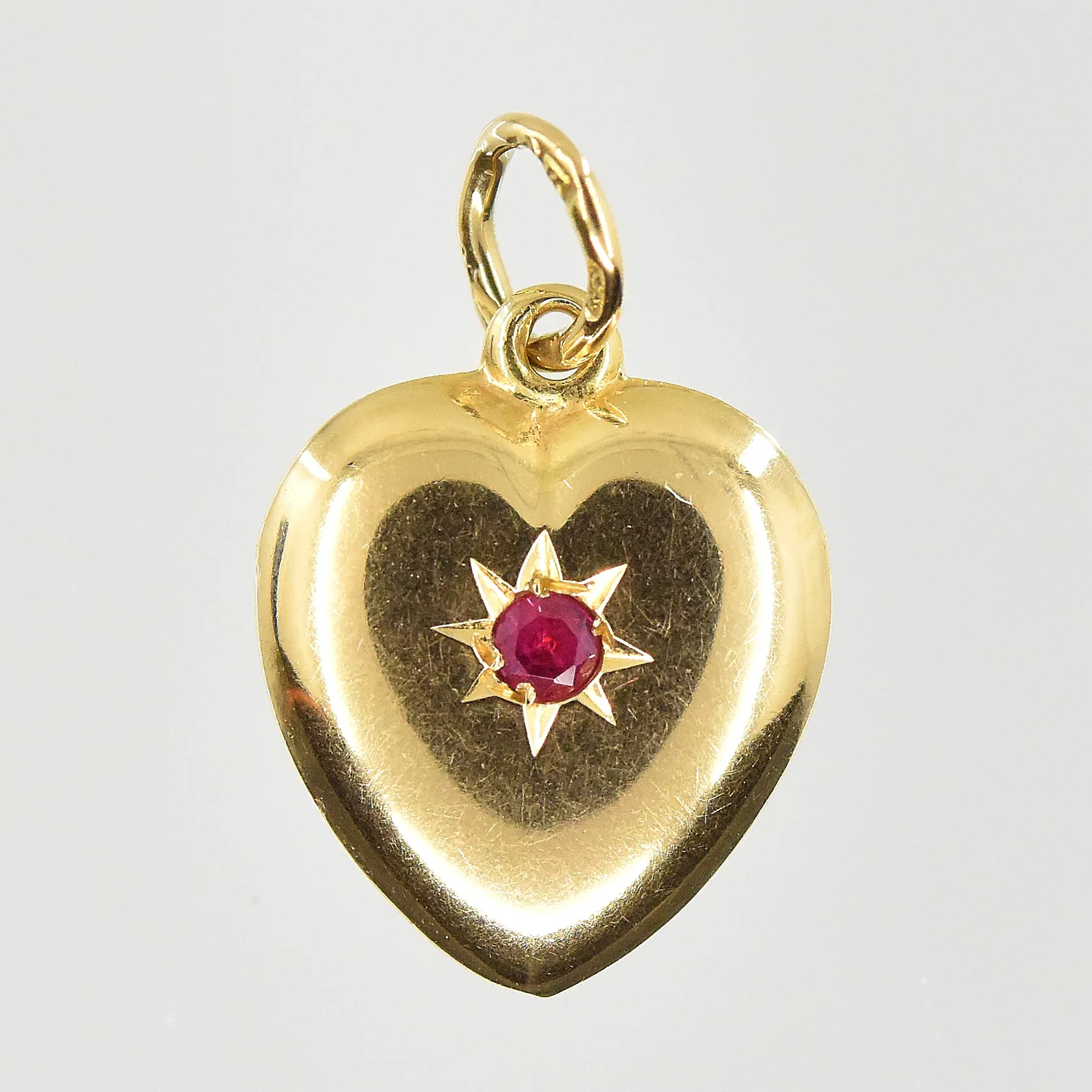 Hänge hjärta med röd sten, längd 13 mm, bredd 11 mm, 18K. Vikt: 0,6 g.