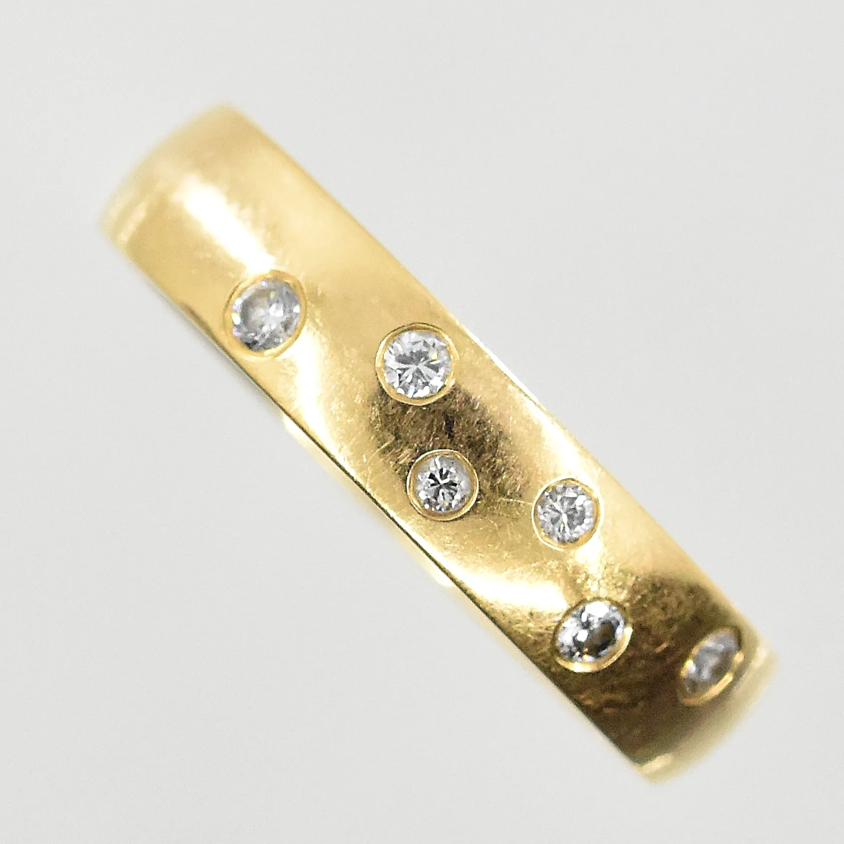 Ring med diamanter 0,12ctv, stl 16¾, bredd 4 mm, gravyr, 18K. Vikt: 5 g.