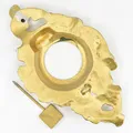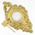 Vägghängt ställ för fickur, längd 17 cm, bredd 9 cm, guldmålad metall.