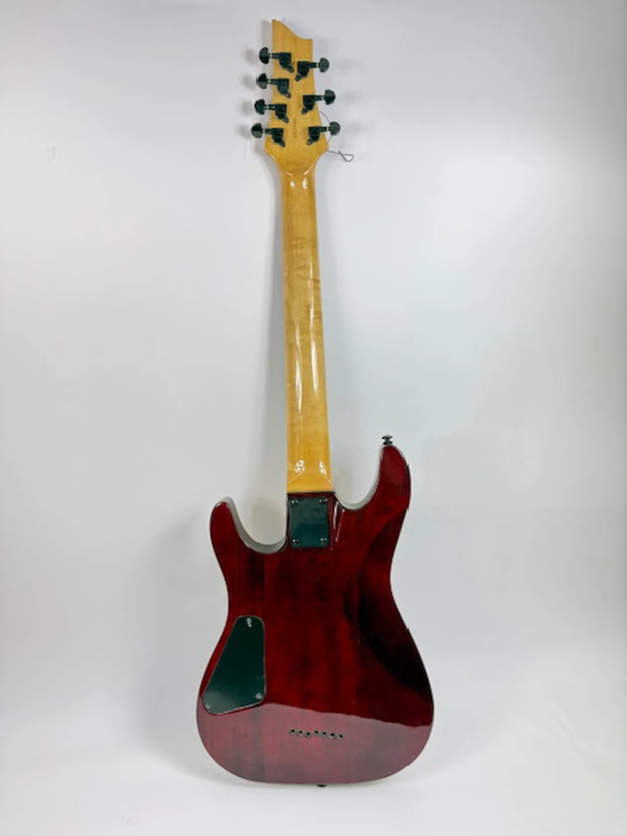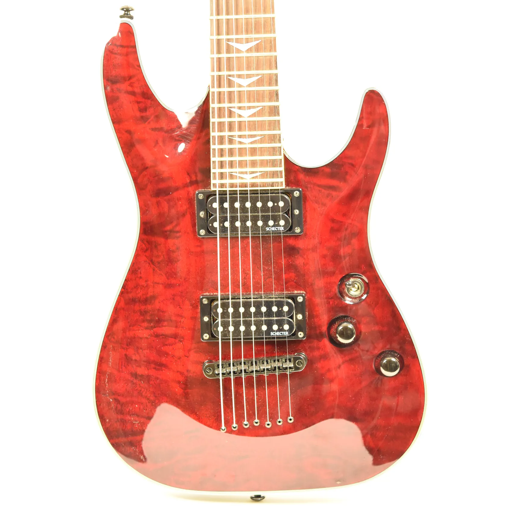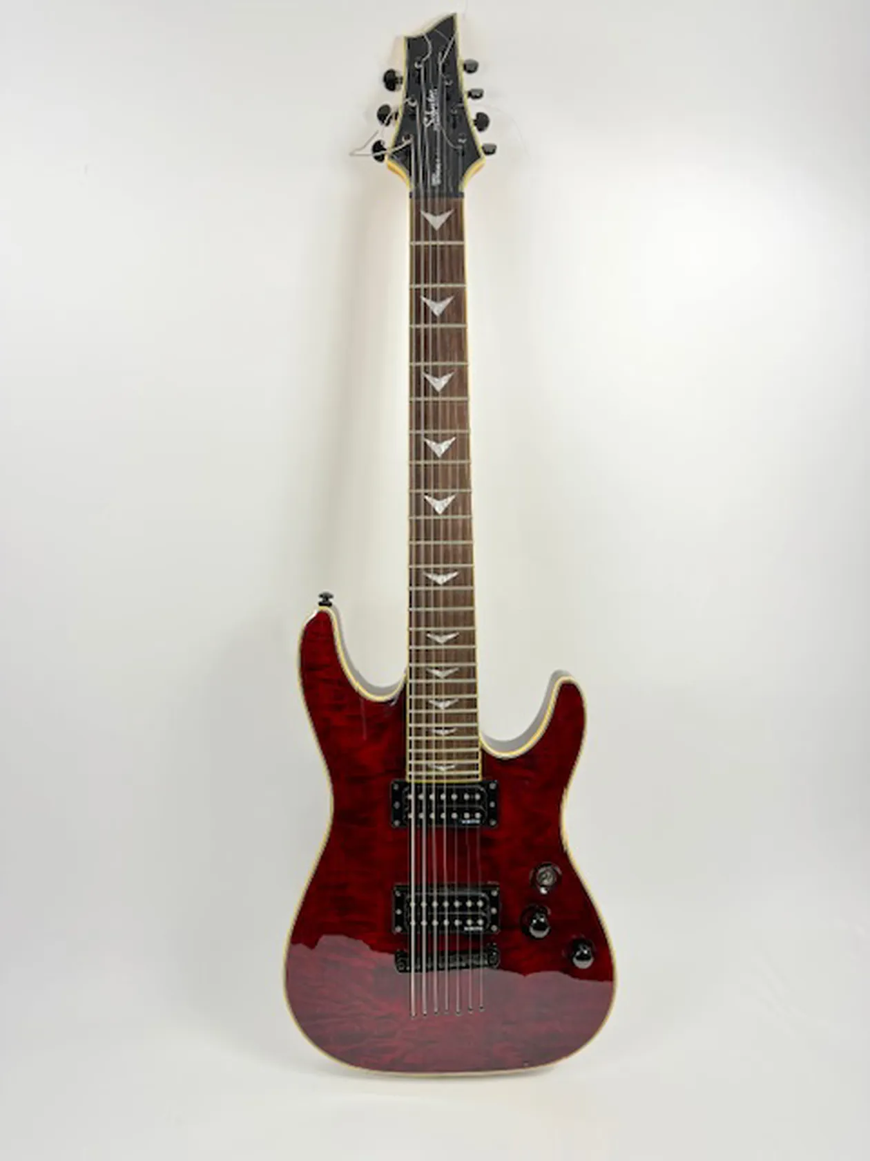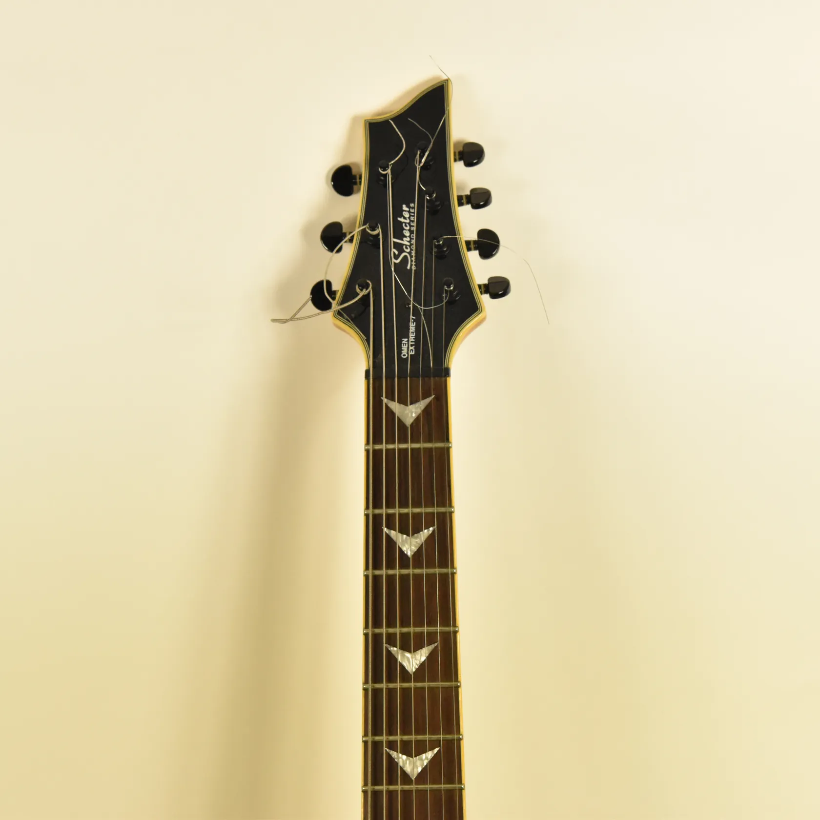 Elgitarr, Schecter Omen-5 diamond series, Omen extreme 7, serienr 0614704, kropp i mahognyfärg, hals i lönnfärg med pärlemorinlägg, mjukt fodral. Skickas med postpaket.