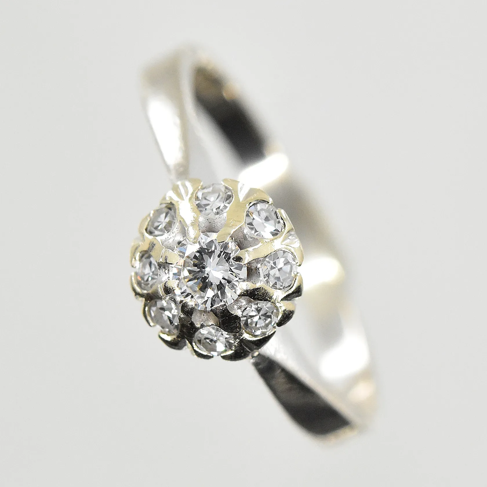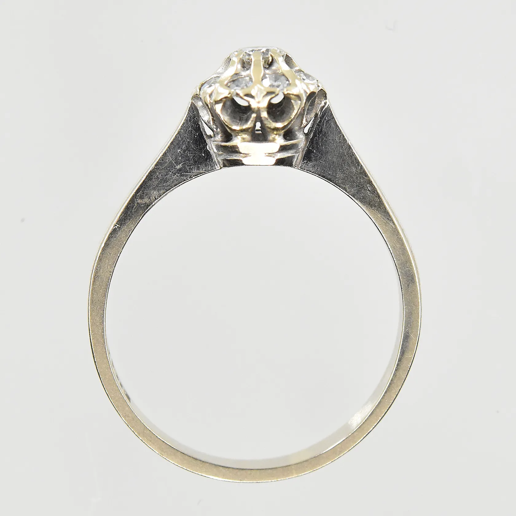 Carmoséring med diamanter 1x015ct, 8x0,02ct, stl 17½, bredd 2-8 mm, vitguld, 18K. Vikt: 3,7 g.