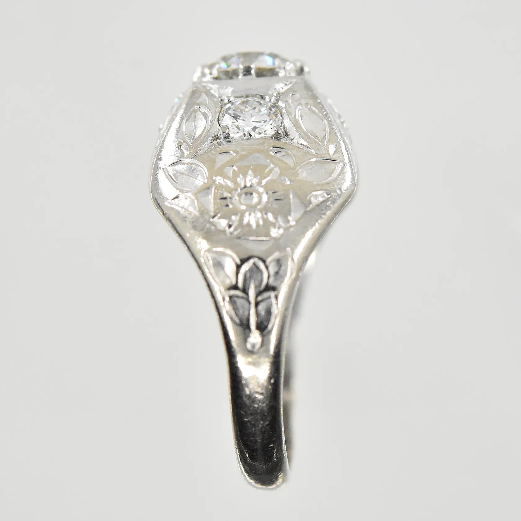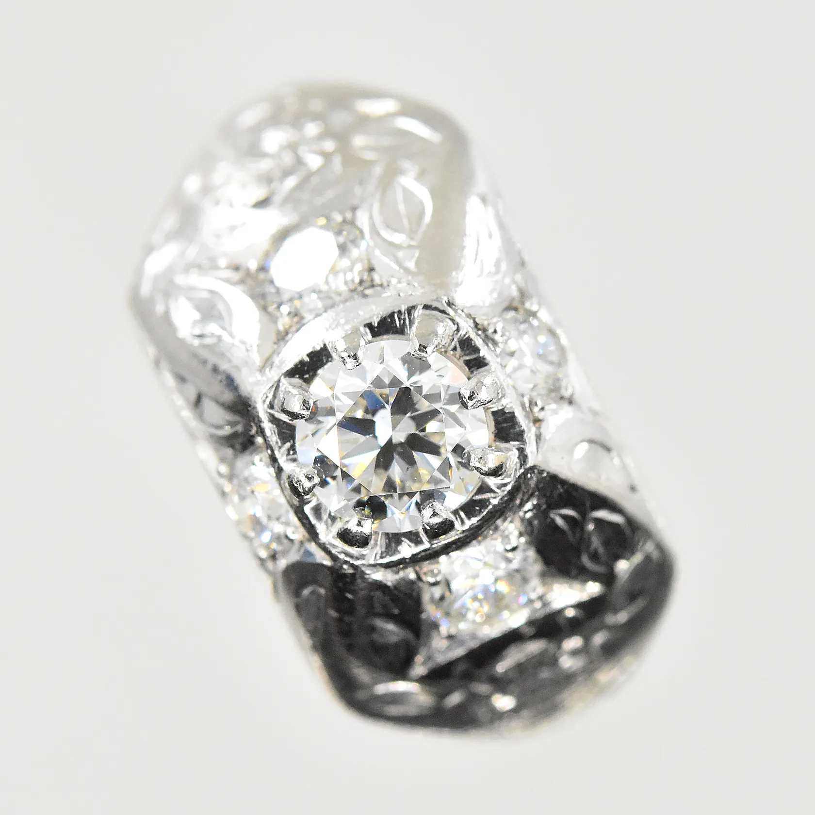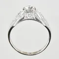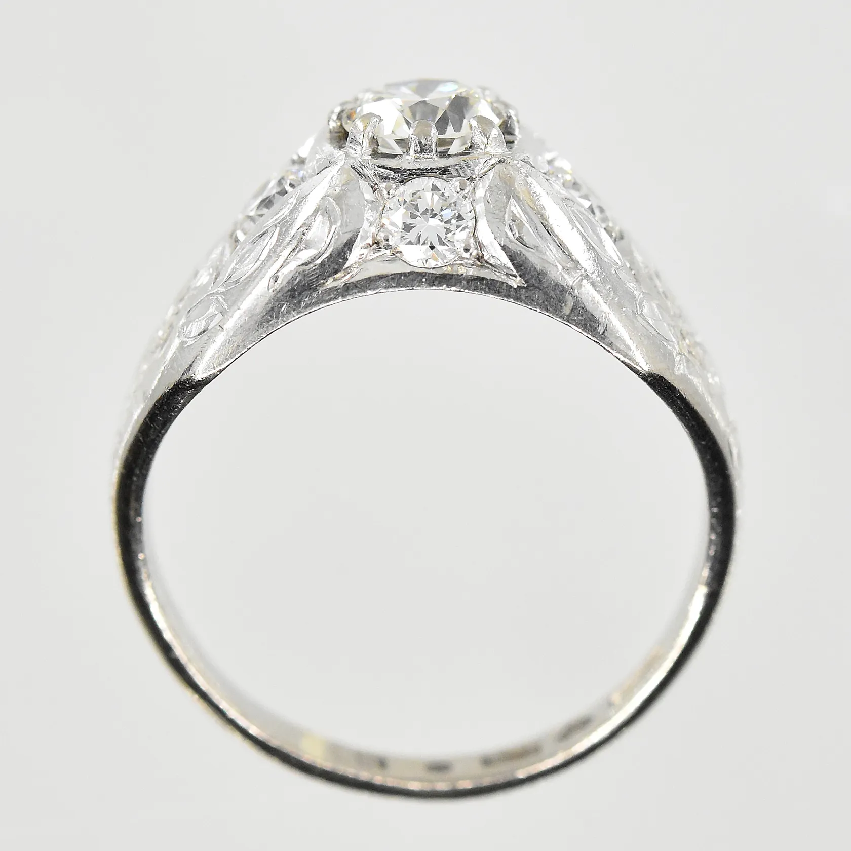 Ring med diamant 1x 0,65, 2x0,15ct, 2x010ct, B9/1952, stl 18¾, bredd 3-11 mm, vitguld, 18K. Vikt: 6,6 g.