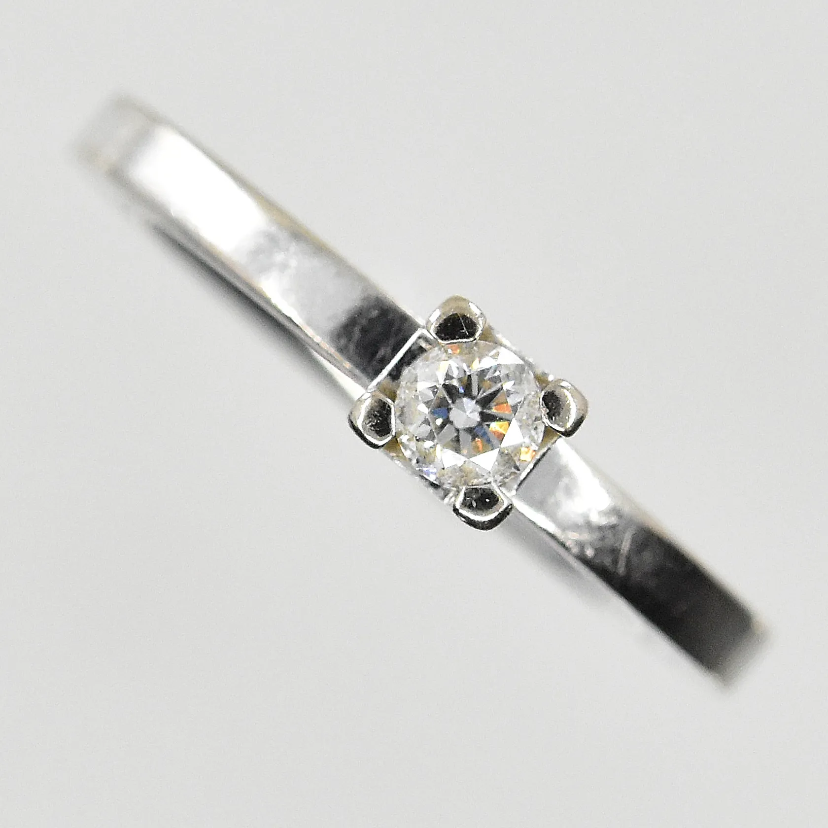 Ring med diamant 0,15ct, stl 16½, bredd 2-4 mm, vitguld, 18K. Vikt: 3,2 g.